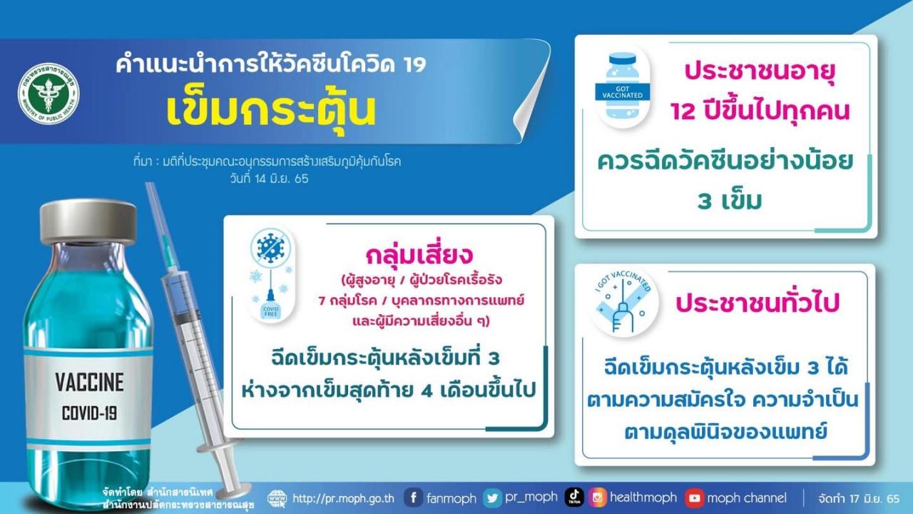- ผู้ได้รับวัคซีนเข็มที่ 3 จำนวน 29,180,767 ราย (คิดเป็น 42% ของประชากร)