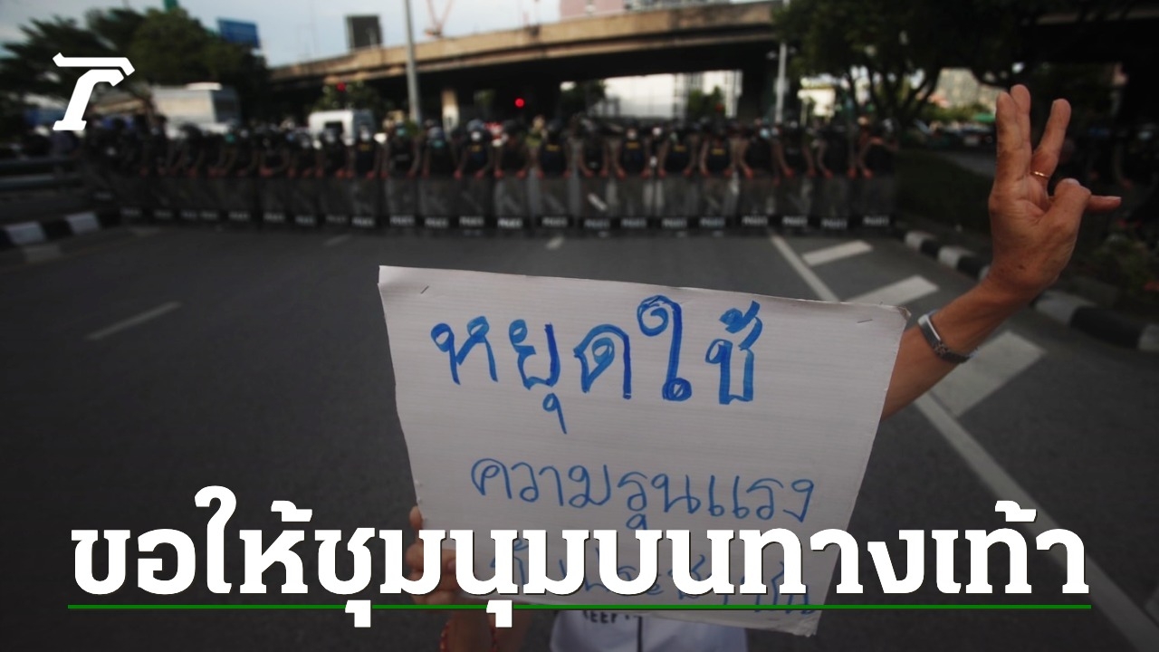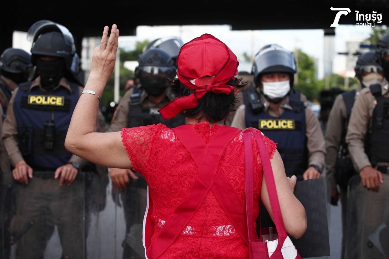 มวลชนเคลื่อนขบวนจากอนุสาวรีย์ชัยสมรภูมิ ถึงแยกดินแดง ตำรวจตรึงกำลังก่อนเปิดจราจร ขอม็อบทำกิจกรรมบนทางเท้า ไม่ยุยงปลุกปั่น