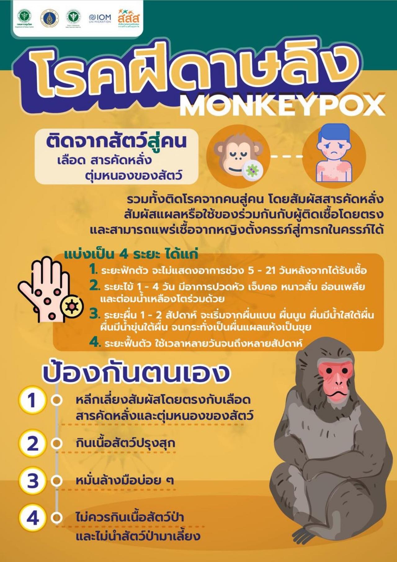 “ขอเน้นย้ำว่า โรคฝีดาษวานรติดต่อได้ยากกว่าโรคโควิด-19 เพราะต้องมีการสัมผัสใกล้ชิดกับผู้ป่วยระยะแพร่เชื้อ ซึ่งเป็นระยะที่ปรากฏอาการแล้ว เช่น มีไข้ ตุ่มหนองตามผิวหนัง”