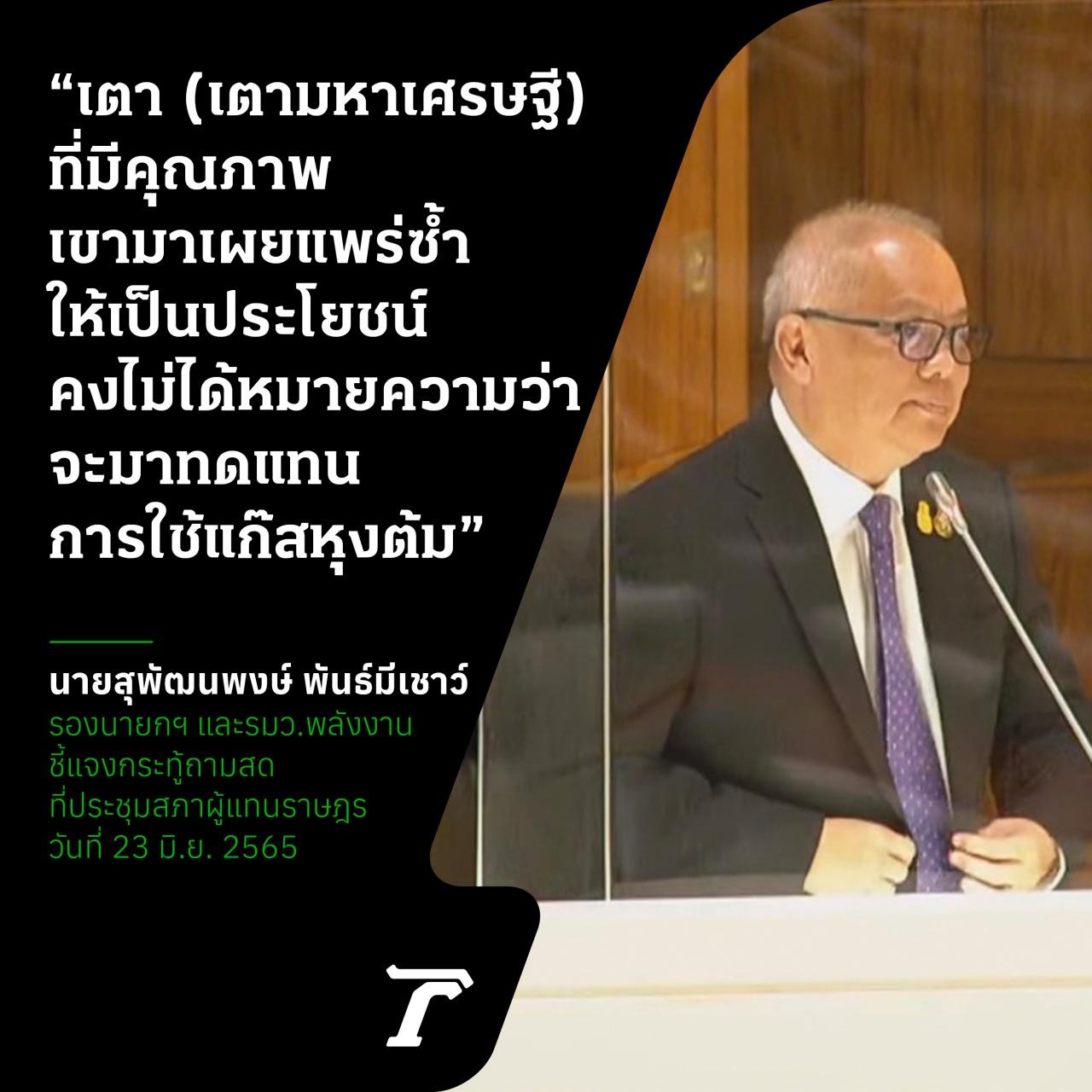 รมว.พลังงาน แจงสภา กระทรวงพลังงานแนะให้ใช้เตามหาเศรษฐีเพราะคิดถึงคนชนบท ไม่ได้นำมาทดแทนก๊าซหุงต้ม ส่วน ปตท.โชว์ผลกำไร ได้ขอความร่วมมือเรื่องค่าการตลาดไปแล้ว ยันรัฐประคองค่าครองชีพปชช.