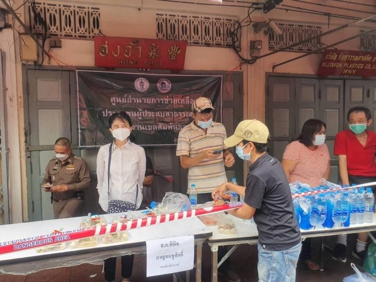 ขณะเดียวกัน สำนักงานเขตสัมพันธวงศ์ ได้จัดตั้งศูนย์อำนวยการช่วยเหลือผู้ประสบสาธารณภัย เพื่อให้ความช่วยเหลือแก่ประชาชนที่ได้รับความเดือดร้อน ตลอดจนจัดเจ้าหน้าที่ให้การอำนวยความสะดวก และให้บริการแจ้งแนวทางการขอรับความช่วยเหลือจากหน่วยงานที่เกี่ยวข้อง