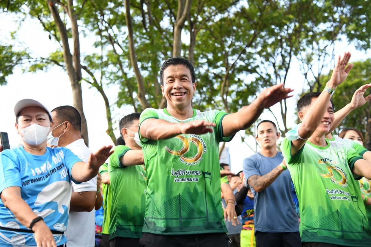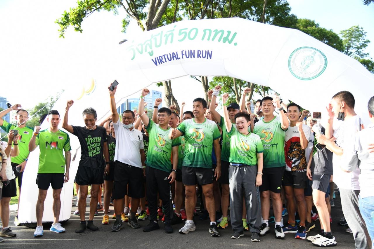 สำหรับการวิ่งสู่ปีที่ 50 กทม. ในวันนี้ก็เป็นหนึ่งในกิจกรรมที่ กทม. อยากเชิญชวนให้ทุกคนมาร่วมออกกำลังกาย เป็นการวิ่งแบบ Virtual Fun Run คือ คนที่ยังวิ่งไม่เก่ง หรือเพิ่งเริ่มวิ่งก็สามารถวิ่งสะสมไปให้ครบ 10 กม. มีเวลาถึง 31 กรกฎาคมนี้ ไปวิ่งที่สวนสาธารณะแห่งใดก็ได้ที่อยู่ใกล้บ้าน หรืออยากจะเปลี่ยนไปวิ่งสวนโซนอื่นๆ ก็มีสวนสวยๆ 39 แห่ง กระจายอยู่ทั่วกรุงเทพฯ