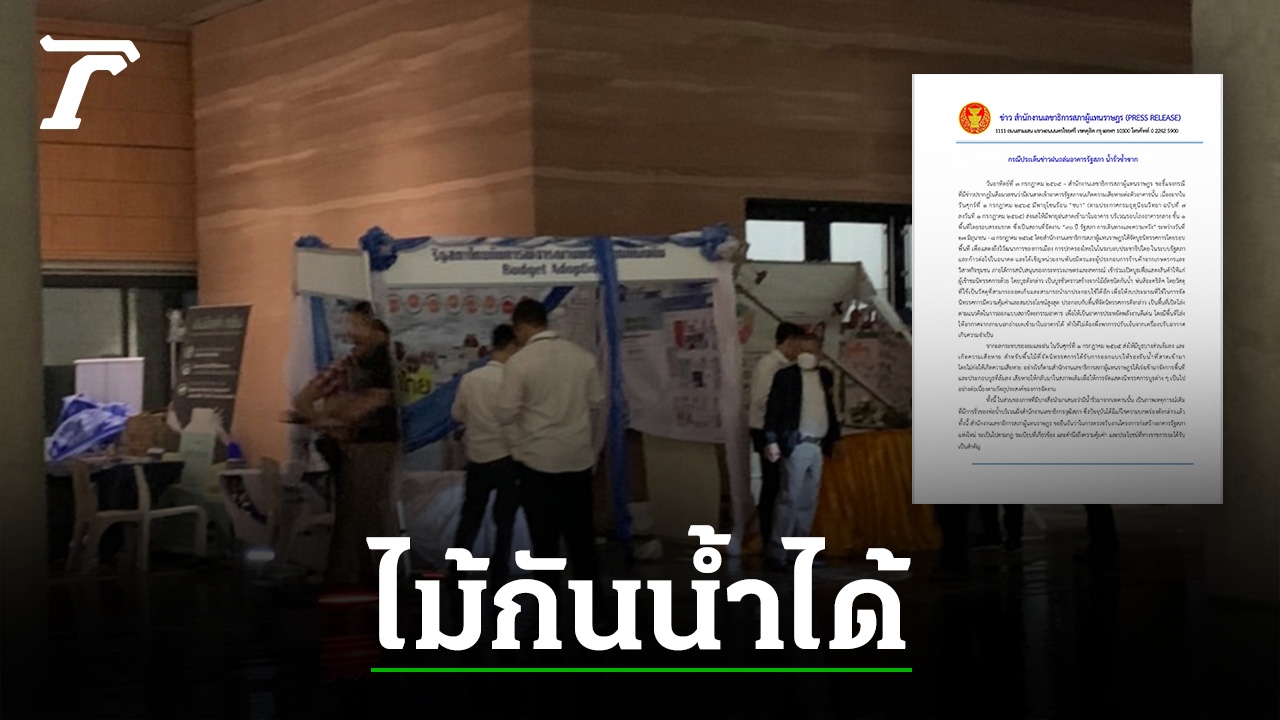 สนง.เลขาฯ สภาฯ ออกเอกสารแจงปมน้ำรั่วเข้าอาคารจนบูธนิทรรศการเสียหาย เผย เป็นบูธชั่วคราว สร้างจากไม้อัดชนิดกันน้ำ ส่วนภาพที่บางสื่อนำมาเสนอเป็นเหตุการณ์เดิมของฝั่ง ส.ว. แต่ปัจจุบันแก้ไขแล้ว