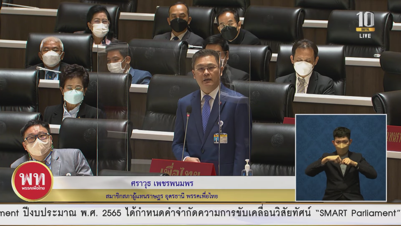 ส.ส.เพื่อไทย กระทู้ถามสดกรณีปล่อยเครื่องบินรบเมียนมารุกล้ำน่านฟ้าไทย อัด นายกฯ บอกยอมรับได้ ถือว่ามาตรฐานต่ำมาก “บิ๊กตู่” มอบ รมช.กลาโหม แจง เข้ามาในช่วงสั้นๆ ก่อนบินกลับฐาน