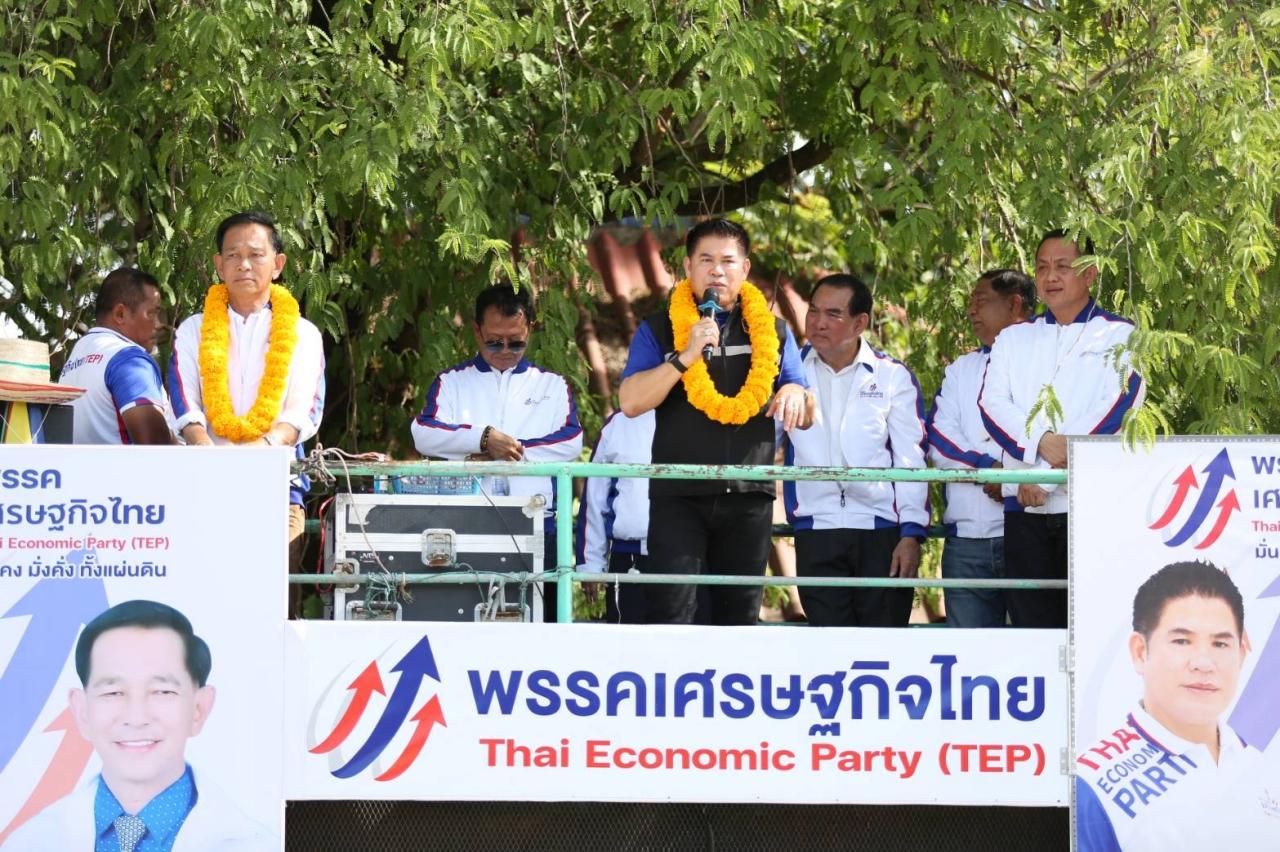 ร.อ.ธรรมนัสฯ ได้กล่าวกับประชาชนบริเวณหน้าตลาดหนองหล่ายช่วงหนึ่ง โดยย้ำว่า ตนเองขอนำครอบครัวพรรคเศรษฐกิจไทยมาบอกกล่าวถึงจุดยืนของพรรคอีกครั้งว่า จะยืนเคียงข้างประชาชนส่วนใหญ่และไม่ได้ร่วมอุดมการณ์กับผู้นำรัฐบาลตามที่พรรคการเมืองหนึ่งกล่าวหาใส่ร้าย แต่เราจะเป็นพรรคที่เน้นย้ำทำงานเพื่อแก้ปัญหาปากท้องชาวไทยฐานราก เพราะถ้าฐานรากไม่ดีประเทศจะเจริญทั้งแผ่นดินได้อย่างไร ดังนั้นต้องให้ความสำคัญกับฐานราก ให้ความสำคัญกับผู้สูงอายุด้วยการผลักดันกฎหมาย เพื่อให้บำนาญผู้สูงอายุ 60 ปีขึ้นไป จำนวน 3,000 บาท ถ้วนหน้า พรรคเราจะเป็นศัตรูกับพวกที่เป็นเผด็จการ เป็นศัตรูของแผ่นดินคือพวกโกงบ้านกินเมือง ดังนั้นใครที่ใส่ร้ายเราอย่าไปเชื่อเด็ดขาด