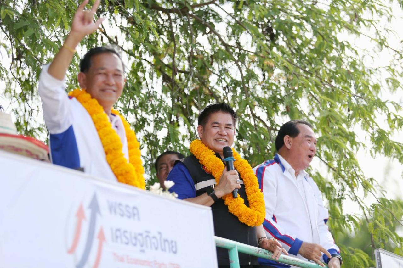 วันที่ 9 กรกฎาคม 2565 ที่จ.ลำปาง ร.อ.ธรรมนัส พรหมเผ่า หัวหน้าพรรคเศรษฐกิจไทย (ศท.) พร้อมคณะกรรมการบริหาญพรรค อาทิ นายบุญสิงห์ วรินทร์รักษ์, นายสมศักดิ์ คุณเงิน, นายวิชิต ปลั่งศรีสกุล, นางสาวธนพร ศรีวิราช, นายเกษม ศุภรานนท์, นายภาคภูมิ บูลย์ประมุข, นางทัศนาพร เกษเมธีการุณ, นางสาวจอมขวัญ กลับบ้านเกาะ, นายไพร พัฒโน นายสุชาติ และนายธนสาร ธรรมสอน มาร่วมปราศรัยและพบปะประชาชนในพื้นที่ เพื่อช่วย นายวัฒนา สิทธิวัง หรือ “หมอรวย” ผู้สมัคร ส.ส.เบอร์ 3 ของพรรคเศรษฐกิจไทย หาเสียงเลือกตั้งซ่อมเขต 4 จ.ลำปาง เป็นวันสุดท้าย พร้อมเดินทางไปปราศรัยต่อที่หน้าวัดเหล่ายาว ต.เสริมซ้าย และบริเวณตลาดหนองหล่าย ต.เกาะคา อ.เกาะคา