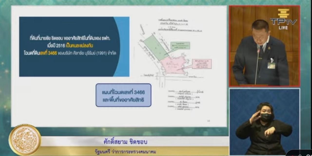 นายศักดิ์สยาม ยังยอมรับว่า นายชัย ชิดชอบ อดีตประธานรัฐสภา หรือบิดา เคยเช่าที่ดินการ รฟท.จริง แต่เป็นคนละแปลงกับที่ฝ่ายค้านนำมาอภิปราย ส่วนกรณีที่กล่าวหาว่าตนเองไปสั่งการไม่ให้ดำเนินการที่ดินของ นายเอ นั้น ขณะนี้ รฟท.ได้ดำเนินการสืบทรัพย์สินของ นายเอ รวมถึงตั้งเจ้าพนักงานบังคับคดีแล้ว ซึ่งทั้งหมดเป็นไปตามขั้นตอนของกฎหมาย ยืนยันไม่ได้มีการละเว้นกับใคร