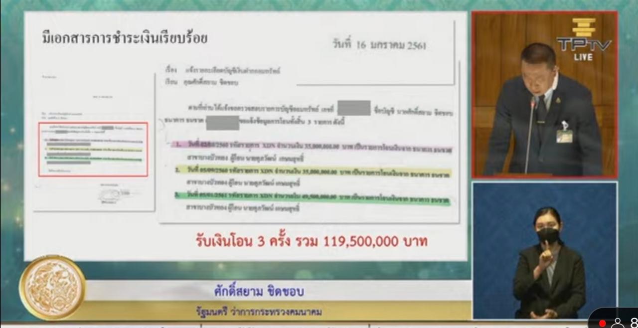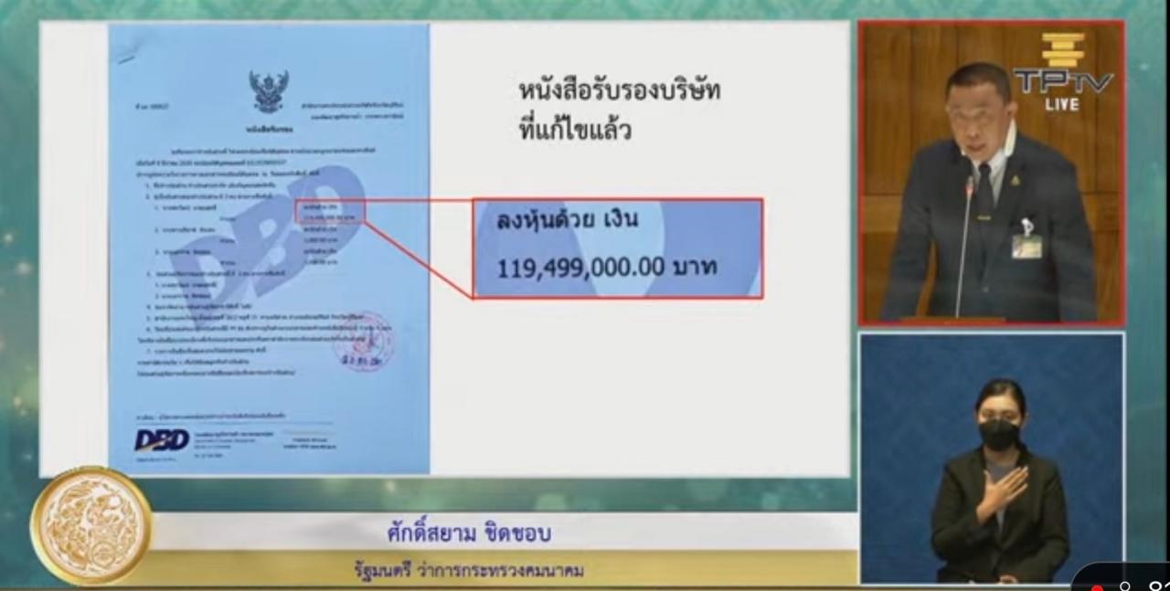 ด้านนายปกรณ์วุฒิ อุดมพิพัฒน์สกุล ส.ส.บัญชีรายชื่อ พรรคก้าวไกล ได้ขอใช้สิทธิ์พาดพิงกล่าวอภิปรายถึงเรื่องหุ้น หจก.บุรีเจริญ ว่าเหตุใดหนี้ 69 ล้านมันยังอยู่