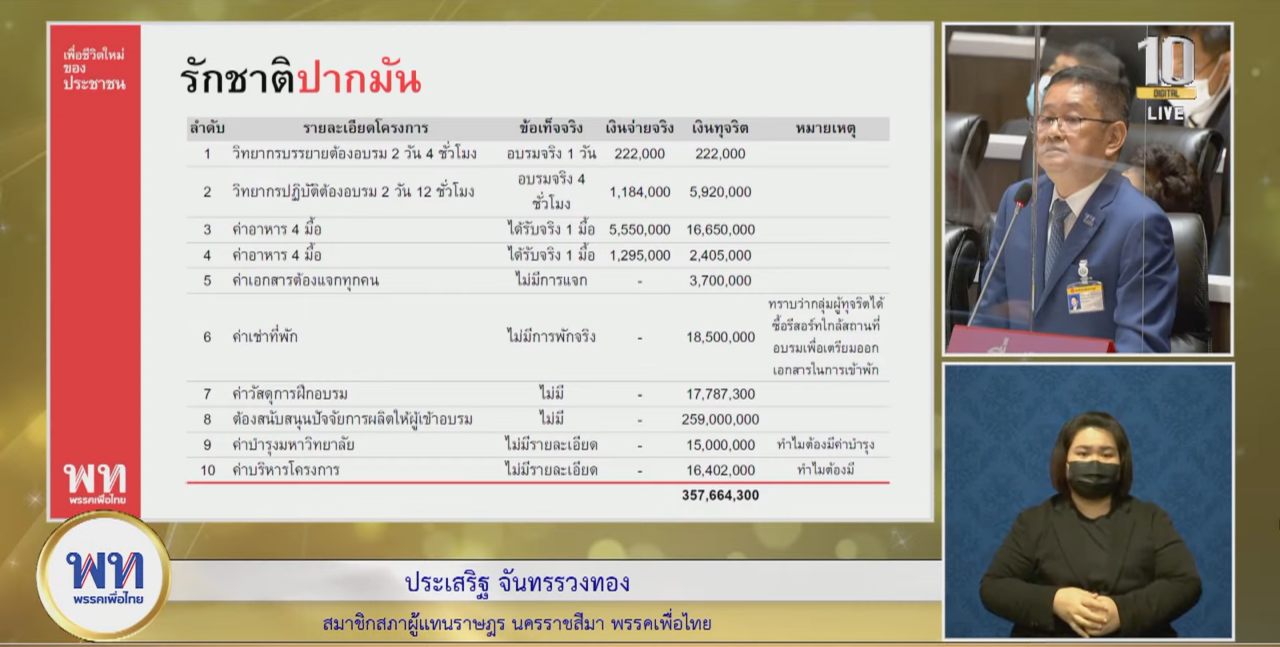 กรณีที่เกิดขึ้นนี้งบ 2,051 ล้านบาท ถูกแบ่งเป็น 4 กลุ่ม จนเกิดเงินทอน 1,600 ล้านบาท ข้อพิรุธที่สำคัญคือ พล.อ.ประยุทธ์ ไม่สนใจข้อทักท้วงของสำนักงบประมาณ ว่า โครงการมีความซ้ำซ้อนกับกระทรวงเกษตรและสหกรณ์ และเป็นโครงการที่ไม่มีความจำเป็นเร่งด่วน ชื่อโครงการถ่ายทอดเทคโนโลยีนวัตกรรมด้านเกษตรกรรมและสมุนไพร แท้จริงเป็นการอบรมปลูกเห็ด และยังส่งเสริมการใช้สมุนไพรบวกกับกัญชา ไม่ได้มีนวัตกรรมใหม่อะไร อีกทั้งมีการระบุอบรม 2 วัน อาหาร 4 มื้อ ค่าใช้จ่ายต่อหัว 10,000 บาท โดยผู้อบรมต้องได้ปัจจัยการผลิตประมาณ 7,000 บาทต่อคน แต่จริงๆ อบรมเพียง 4 ชั่วโมง ได้ข้าว 1 กล่อง รายละเอียดหลายจุดพบเห็นความผิดปกติ และหลังจากได้ยื่นคำร้องให้ตรวจสอบ พบว่าการอบรมของมหาวิทยาลัย 1 ใน 4 แห่งนี้ มีการเปลี่ยนสถานที่อบรมเหมือนกลัวประชาชนจะรู้ ขณะที่เมื่อเชิญทั้ง 4 มหาวิทยาลัยมาสอบถาม ก็ตอบคำถามไม่ได้เลย