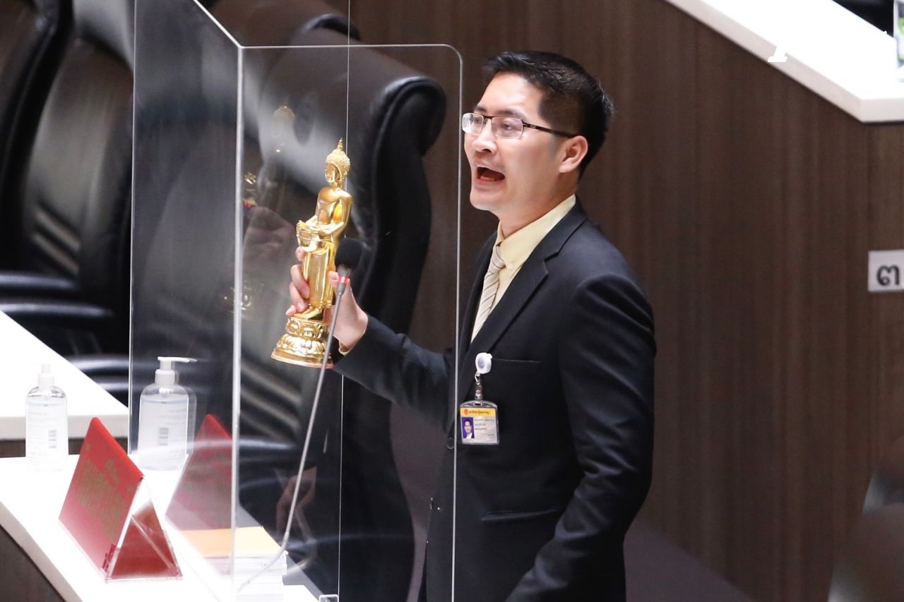พร็อบยังเยอะ “เต้” ชูพระพุทธรูป ขอบิณฑบาตนายกฯ ลาออกจากตำแหน่ง บอก 8 ปี แล้ว (คลิป)