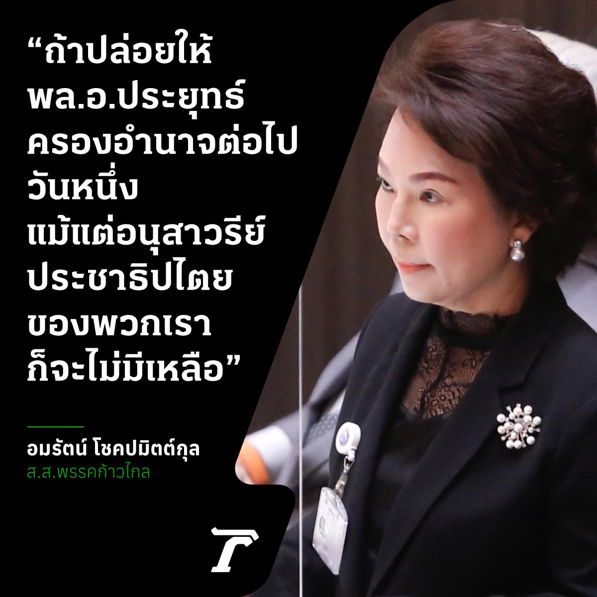 เวลา 10.30 น. ถึงคิว นางอมรัตน์ โชคปมิตต์กุล ส.ส.บัญชีรายชื่อ พรรคก้าวไกล ถือเป็นอีกคนที่ถูกจับตาในการอภิปรายไม่ไว้วางใจ พล.อ.ประยุทธ์ ถึงความผิดปกติในการประมูลโครงการที่เกี่ยวข้องกับการทำลายอนุสาวรีย์ที่มีความเชื่อมโยงกับการเปลี่ยนแปลงการปกครอง 2475 หลายโครงการ ภายใต้การดูแลของกองทัพ ที่ชัดเจนว่าเป็นการล็อกผลการประมูลให้กับผู้รับเหมาบางราย กรณีโครงการรื้อถอนอนุสาวรีย์พระยาพหล และจอมพล ป. ที่กองทัพบกเป็นผู้จัดซื้อจัดจ้างโดยวิธีการคัดเลือก ซ้ำผู้รับเหมาเข้ารื้อถอนตั้งแต่เดือน ม.ค. 2563 หรือก่อนที่จะประกาศผู้ชนะการเสนอราคาถึง 15 เดือน รวมถึงโครงการสร้างแท่นประดิษฐานพระบรมราชานุสาวรีย์รัชกาลที่ 9 และงานปรับปรุงภูมิทัศน์ ที่จะนำมาแทนที่อนุสาวรีย์พระยาพหลที่เพิ่งทำการรื้อถอนออกไปด้วย