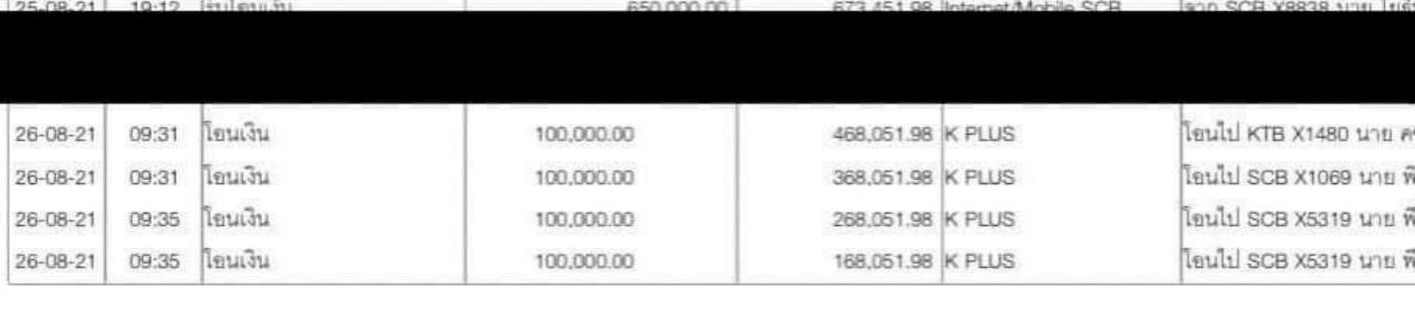 หลังจากนั้น มีหลักฐานการโอนออก ในวันที่ 26 สิงหาคม 2564 ตามเวลา ดังนี้