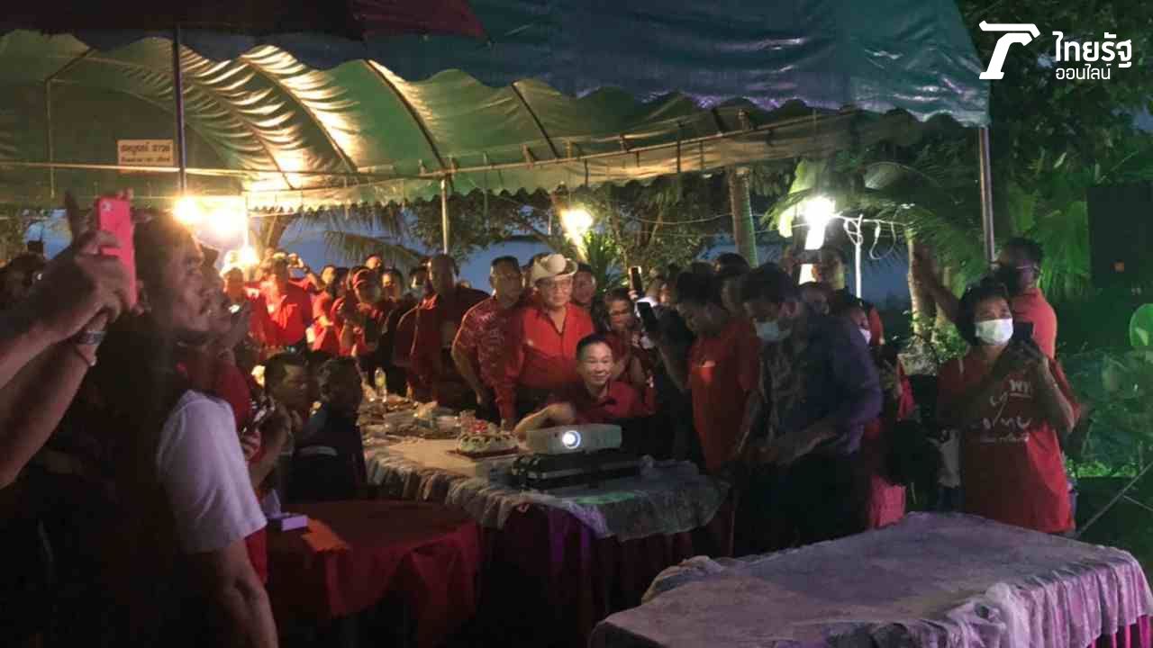 คนเสื้อแดงอีสาน เป่าเค้กวันเกิดให้ ทักษิณ ชินวัตร "พี่โทนี่" โฟนอินจากดูไบ ขอบคุณ บอก ปีนี้เป็นปีสุดท้ายนะ ปีหน้าเราเจอกันที่เมืองไทยก็แล้วกัน” บอก เลือกตั้งคราวหน้า ประชาชนตัดสินใจลงโทษได้ชัดเจน มั่นใจ พรรคเพื่อไทย ทำได้