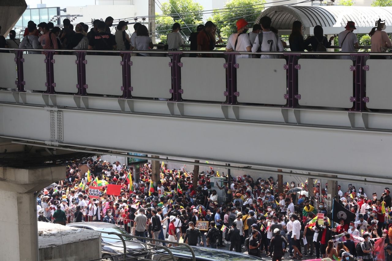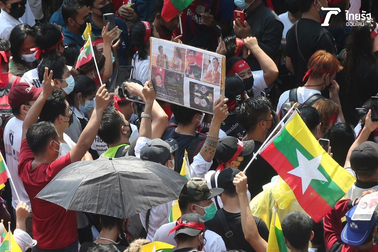 แรงงานเมียนมาบุกชุมนุมหน้าสถานทูตในไทย อ่านแถลงการณ์ประณามรัฐบาลทหาร สั่งประหาร 4 แกนนำเรียกร้องประชาธิปไตย จี้รัฐบาลไทยแสดงจุดยืนให้ชัด ไม่เห็นด้วยกับการปราบปรามประชาชนที่เห็นต่าง