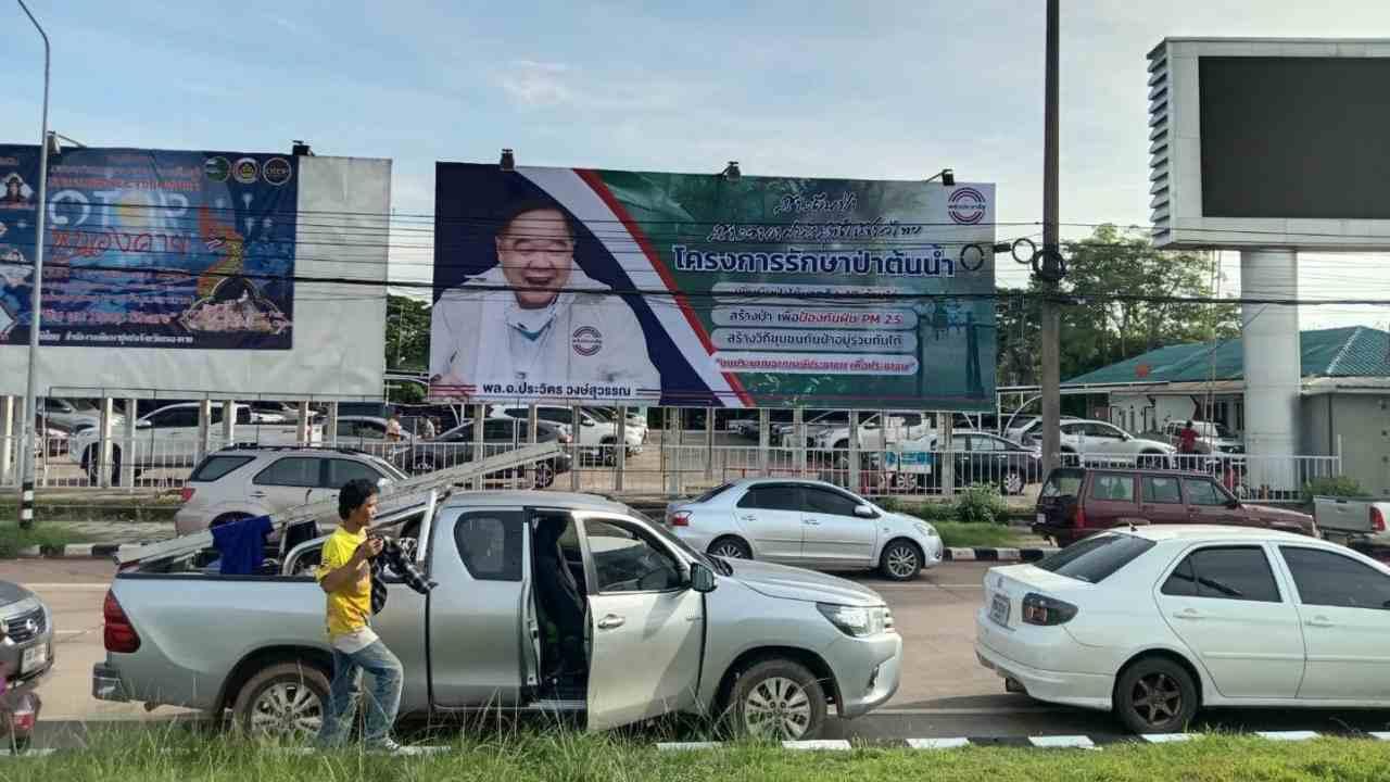วันที่ 4 ส.ค. ผู้สื่อข่าวรายงานว่า ที่ จ.หนองคาย พบป้ายไวนิลขนาดใหญ่เป็นภาพของ พล.อ.ประวิตร วงษ์สุวรรณ รองนายกรัฐมนตรี ในฐานะหัวหน้าพรรคพลังประชารัฐ (พปชร.) พร้อมข้อความ “ไม่รู้ ไม่รู้ แต่ไม่แล้งแน่” โครงการพัฒนาน้ำบาดาล ไม่ร้อน ไม่แล้ง กักเก็บน้ำ ฟื้นชีวิต พัฒนา ต่อยอดเกษตรกรไทย ด้วยภาษีเกษตรกร พลิกชีวิตเกษตรกรทั่วไทย ให้มีน้ำใช้ตลอดปี งบประมาณจากภาษีประชาชน เพื่อประชาชน ติดอยู่ทั่วบริเวณจังหวัดหนองคาย
