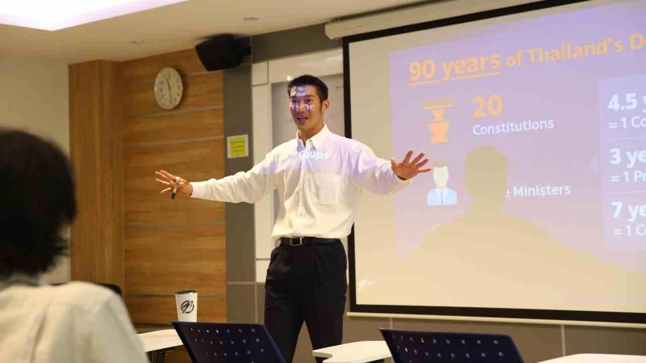 "ธนาธร" ประธานคณะก้าวหน้า เคลื่อนไหว บรรยายให้ นศ.ใหม่ หลักสูตรอินเตอร์ธรรมศาสตร์ แชร์ ประสบการณ์สมัยทำกิจกรรม ย้ำ หากไม่อาจทำให้อำนาจสูงสุดเป็นของประชาชน ไม่มีทางแก้ปัญหาประเทศไทยได้