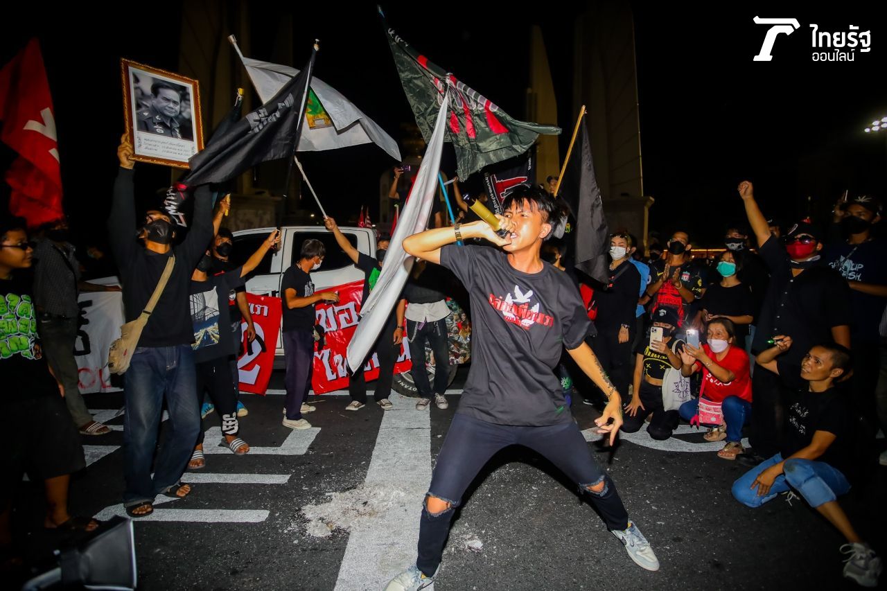ขณะที่บรรยากาศที่เวทีกลุ่มมวลชนอิสระเครือข่ายราษฎร บริเวณอนุสาวรีย์ประชาธิปไตย เมื่อเวลา 20.45 น. ผู้สื่อข่าวรายงานว่า เริ่มร้อนแรงขึ้น เมื่อนายธนายุทธ ณ อยุธยา หรือ บุ๊ค ศิลปินแร็ปวง Eleven Finger ได้มาร่วมร้องเพลงแร็ปเนื้อหาเสียดสีสังคมและการบริหารประเทศของรัฐบาลเรียกเสียงโห่ฮาจากวัยรุ่นรอบพื้นที่ดังลั่น พร้อมกันนี้ยังได้มีนำกระดาษที่ให้มวลชนร่วมกันเขียนจดหมายถึง พล.อ.ประยุทธ์ มาทำการจุดไฟเผาแล้วนำภาพพล.อ.ประยุทธ์ มาถือไว้ ต่อด้วยการจุดพลุควันสีส้ม สลับการชูสามนิ้ว สื่อถึงการส่งสัญญาณเตือนเผด็จการให้ยุติการสืบทอดอำนาจและพ้นจากตำแหน่ง