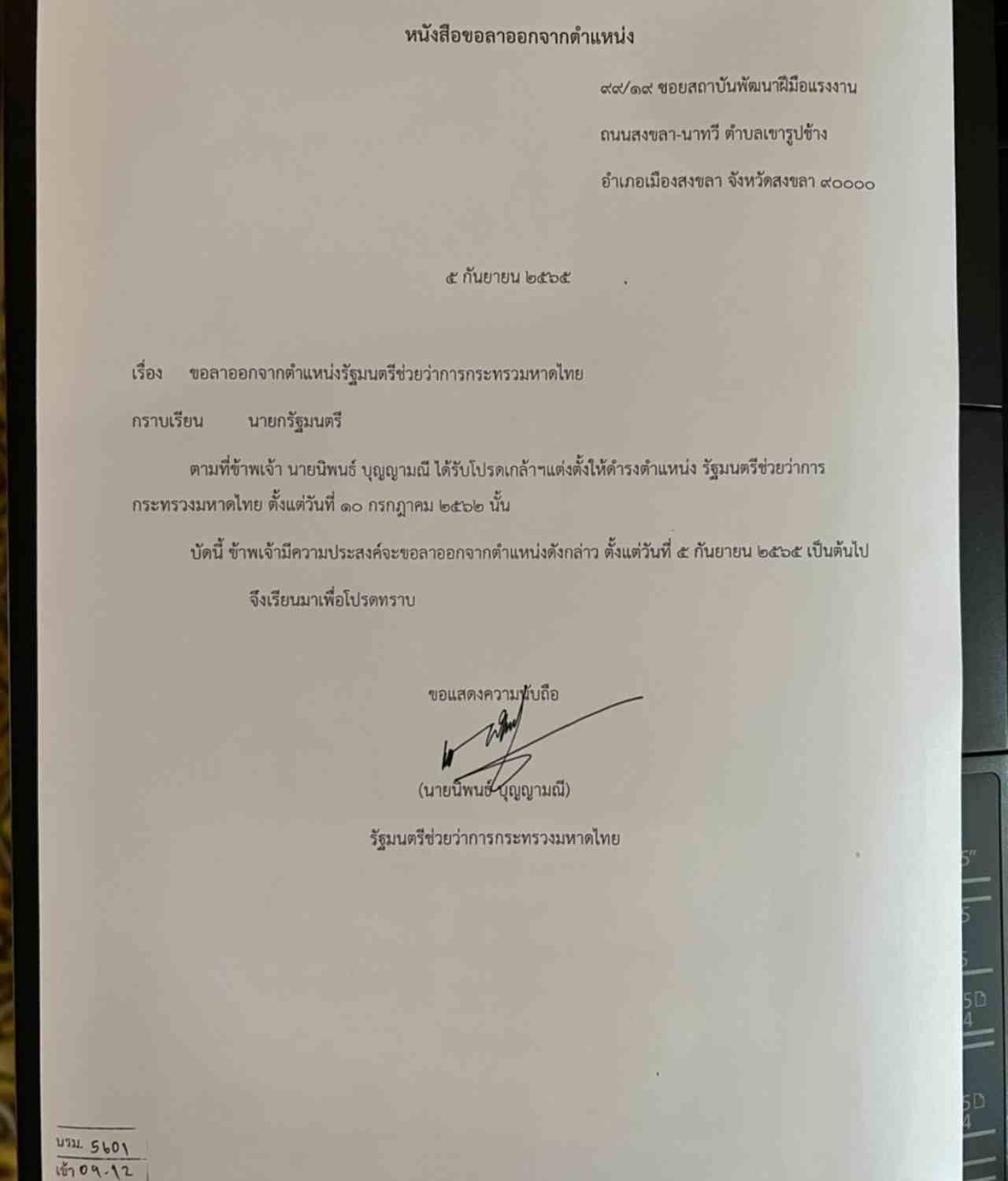 "นิพนธ์" รมช.มหาดไทย ประกาศลาออกแล้ว ที่ศาลอาญาคดีทุจริตฯ ให้เหตุผลไม่อยากใช้เวลาราชการมาสู้คดี ส่วนเรื่องการจัดสรรตำแหน่ง ให้พรรคเป็นผู้ตัดสิน
