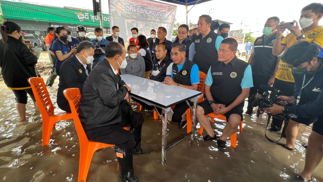 วันที่ 9 ก.ย. 2565 พล.อ.อนุพงษ์ เผ่าจินดา รัฐมนตรีว่าการกระทรวงมหาดไทย ในฐานะผู้บัญชาการป้องกันและบรรเทาสาธารณภัยแห่งชาติ (บกปภ.ช.) พร้อมด้วย นายสุทธิพงษ์ จุลเจริญ ปลัดกระทรวงมหาดไทย นายบุญธรรม เลิศสุขีเกษม อธิบดีกรมป้องกันและบรรเทาสาธารณภัย นายสมคิด จันทมฤก อธิบดีกรมการพัฒนาชุมชน คณะผู้บริหารกระทรวงมหาดไทย ลงพื้นที่ศูนย์บัญชาการสถานการณ์น้ำท่วม เทศบาลนครรังสิต จ.ปทุมธานี เพื่อตรวจเยี่ยมให้กำลังใจผู้ประสบภัยและผู้ปฏิบัติงาน โดยมี พล.ต.ท.คํารณวิทย์ ธูปกระจ่าง นายกองค์การบริหารส่วนจังหวัดปทุมธานี ร.ต.อ.ตรีลุพธ์ ธูปกระจ่าง นายกเทศมนตรีนครรังสิต นายพงศธร กาญจนะจิตรา รองผู้ว่าราชการจังหวัดปทุมธานี นายดรณ์ สมิตะเกษตริน ปลัดจังหวัดปทุมธานี นางสาวกันตรัตน์ เริ่มสูงเนิน นายอำเภอธัญบุรี และเจ้าหน้าที่ที่เกี่ยวข้อง ให้การต้อนรับ