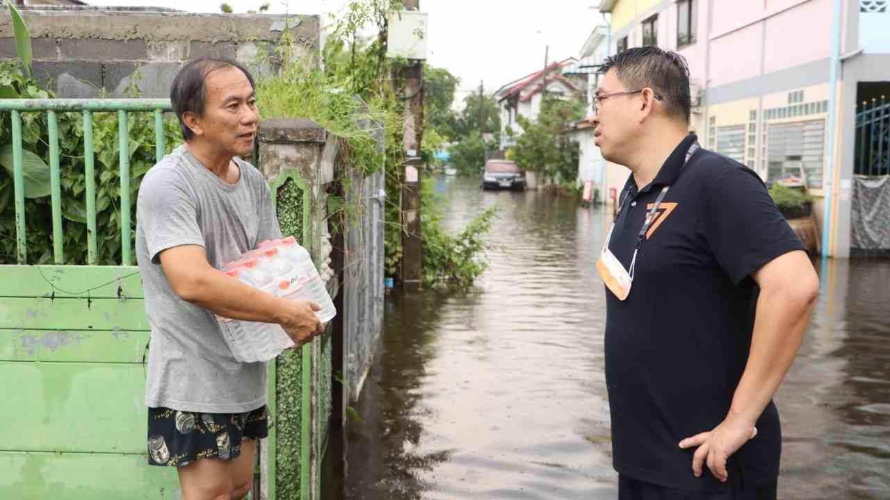 การเดินทางเริ่มต้นที่วัดลาดกระบัง หมู่บ้านประเสริฐสุข ซึ่งเป็นหมู่บ้านที่ติดกับคลองประเวศบุรีรมย์ หลังฝนตกอย่างต่อเนื่อง ปริมาณน้ำฝนที่เพิ่มสูงขึ้น ทำให้น้ำในคลองประเวศบุรีรมย์เอ่อล้นท่วมบ้านเรือนพี่น้องประชาชน มีประชาชนต้องติดอยู่ภายในบ้านหลังน้ำท่วมสูง พรรคก้าวไกลจึงนำสิ่งของจำเป็นโดยเฉพาะน้ำดื่มไปมอบให้กับประชาชน และได้เดินทางต่อไปยัง หมู่บ้านเคหะนคร 2 ซอยลาดกระบัง 36 ระหว่างการเยี่ยมและให้กำลังใจพี่น้องประชาชน มีประชาชนให้ความเห็นกับผู้สื่อข่าวว่า "ปีนี้ค่อนข้างหนักกว่าปี 54 ครับ เพราะทุกปีไม่เคยท่วมถึงตรงนี้" เนื่องจากบ้านของตนถูกน้ำท่วมสูงกว่าทุกปี