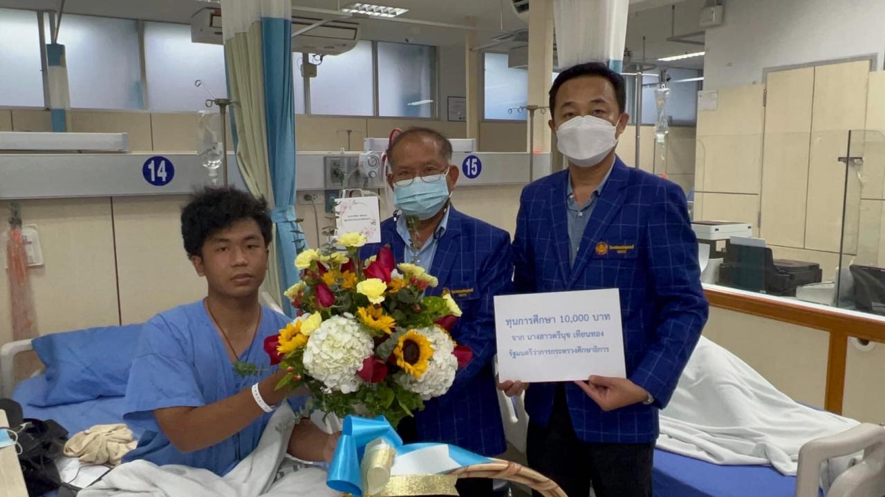 นอกจากนี้ น.ส.ตรีนุช ยังได้มอบหมายให้ สอศ. โดยประธานกรรมการอาชีวศึกษาจังหวัดอุดรธานี เป็นผู้แทนมอบช่อดอกไม้และทุนการศึกษา จำนวน 10,000 บาทให้กับ น้องบาส และมอบหมาย สพฐ. โดย สพม.อุดรธานี ตลอดจนนักจิตวิทยาโรงเรียนประจำเขตพื้นที่ เข้าเยี่ยมน้องบอส และนักเรียนที่ประสบอุบัติเหตุด้วย.