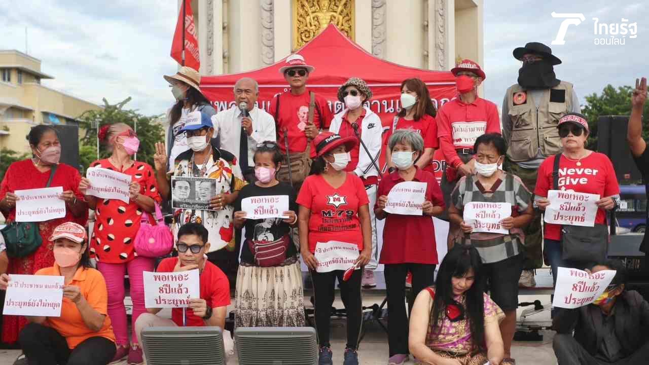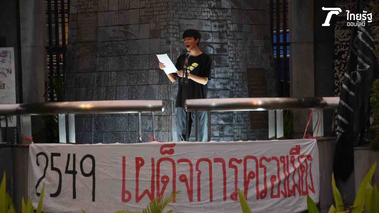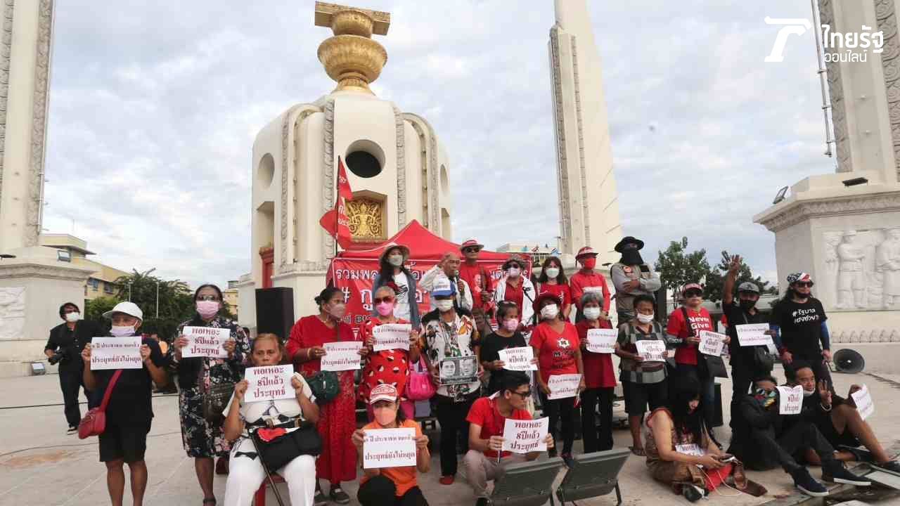 ม็อบ รวมพลคนเสื้อแดงต่อต้านเผด็จการ นำมวลชนทำกิจกรรม “รำลึกถึงวันรัฐประหาร คสช. ครบ 16 ปี วันที่ 19 ก.ย. 2549 ชูป้าย พร้อมประกาศผ่านเครื่องขยายเสียง ไม่เอา 3 ป.