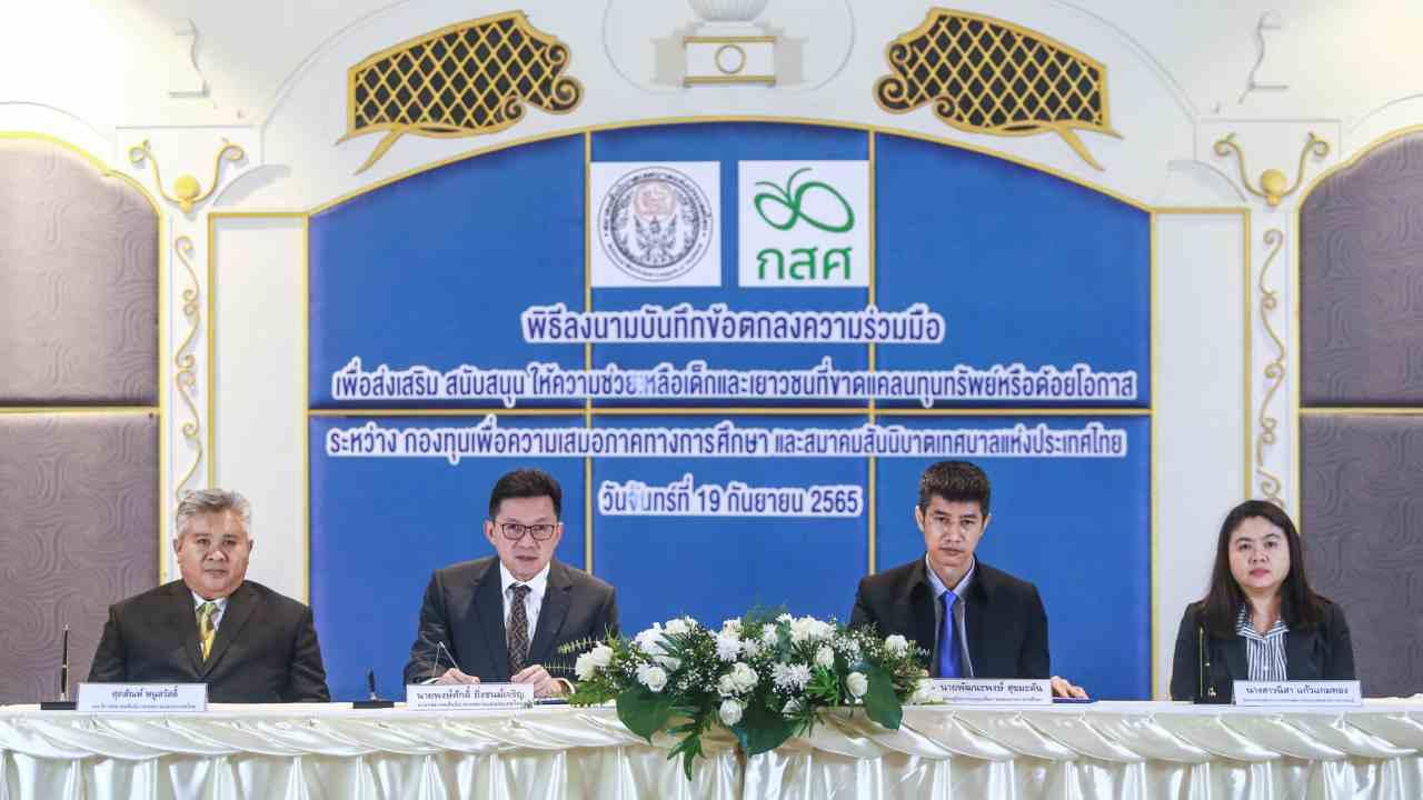 ณ ห้องจูปิเตอร์ 4 อาคารชาเลนเจอร์ เมืองทองธานี จังหวัดนนทบุรี ผู้สื่อข่าวรายงานว่า กองทุนเพื่อความเสมอภาคทางการศึกษา (กสศ.) ได้ร่วมลงนามบันทึกข้อตกลงความร่วมมือกับสมาคมสันนิบาตเทศบาลแห่งประเทศไทย (ส.ท.ท.) ในการดำเนินงานร่วมกันเพื่อส่งเสริม สนับสนุนให้ความช่วยเหลือแก่เด็กและเยาวชนที่ขาดแคลนทุนทรัพย์หรือด้อยโอกาส และผู้ด้อยโอกาส ให้เข้าถึงการเรียนรู้ตลอดชีวิตเพื่อสร้างความเสมอภาคทางการศึกษา