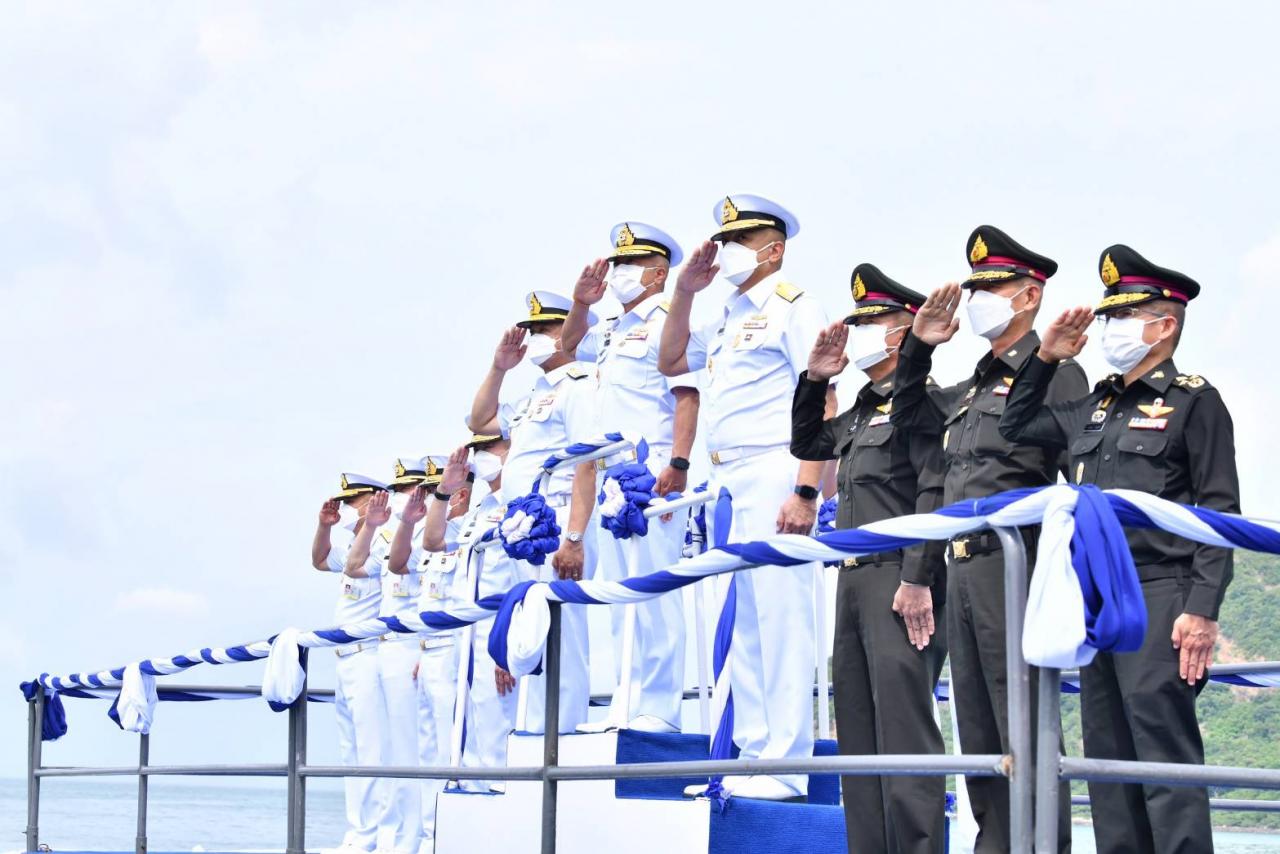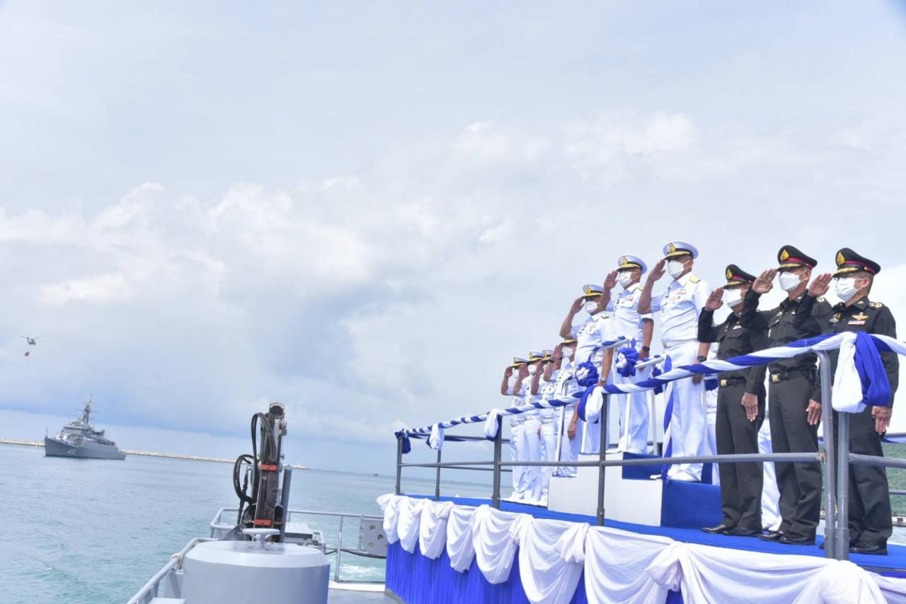 โดยเมื่อ ปลัดกลาโหม ขึ้นเรือหลวงนเรศวร ผบ.ทร. นำขึ้นแท่นรับความเคารพ โดยมี เรือหลวงปิ่นเกล้ายิงสลุต เพื่อเป็นเกียรติ จำนวน 19 นัด จากนั้นปลัดกระทรวงกลาโหม ได้ลงจากเรือ ไปยังเรือ ต.112 เพื่อตรวจพลสวนสนามทางเรือ โดย ผบ.ทร. ได้กล่าวสดุดีและมอบของที่ระลึกแด่ปลัดกลาโหม