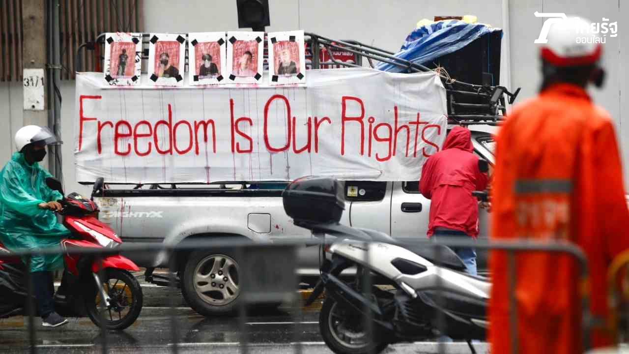 ภรรยาแกนนำกลุ่มทะลุฟ้า นำม็อบฝ่าฝนเคลื่อนไหว ยื่นหนังสือถึง 6 ประเทศที่จะเข้าร่วมประชุมเอเปค ฟ้องรัฐไทยละเมิดสิทธิ์ ไม่ให้ประกันตัวออกมาสู้คดี ม.112 จนต้องถูกคุมขังในเรือนจำรวม 22 คน