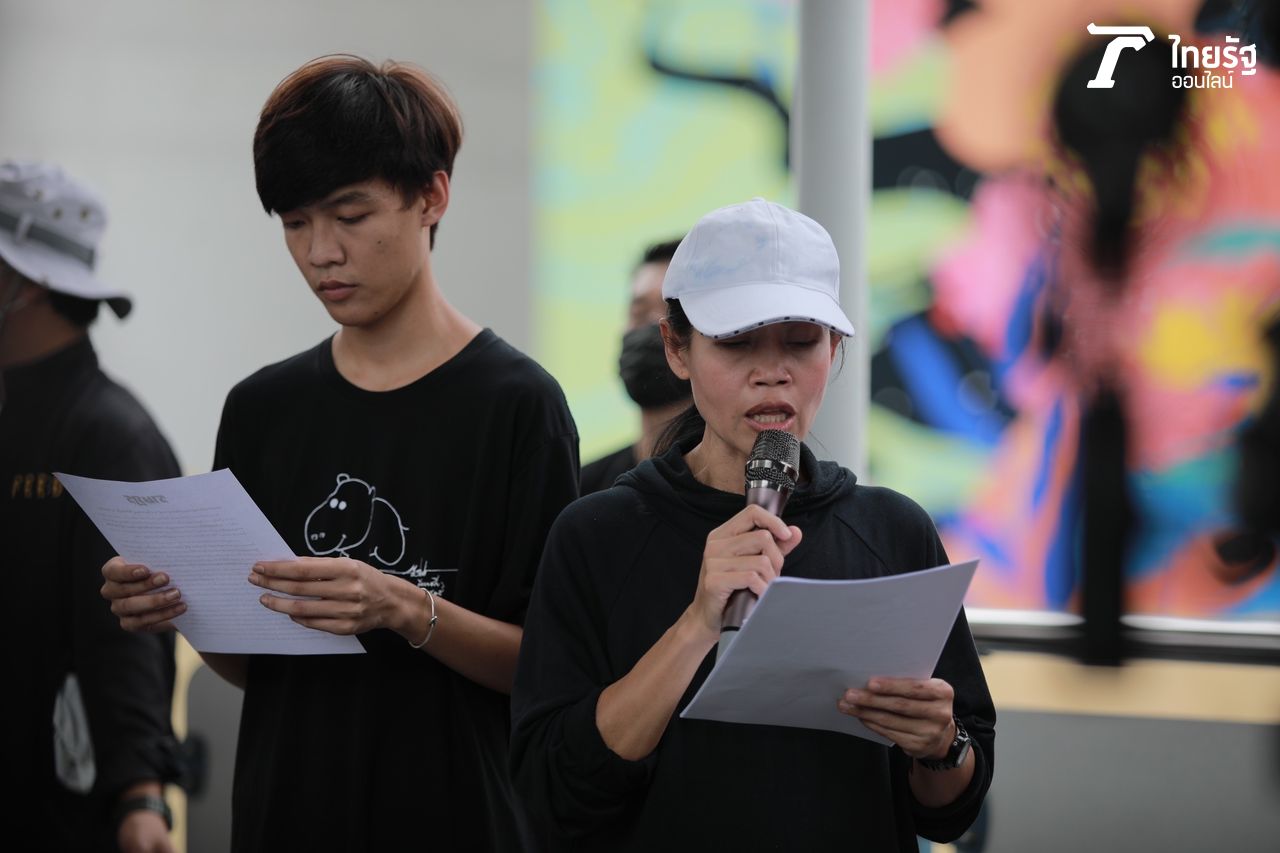 จากนั้นทางกลุ่มได้อ่านแถลงการณ์ ถึงข้อเรียกร้องในอดีต 3 ข้อ และขอเรียกพล.อ.ประยุทธ์ว่านายกฯ เถื่อน นับตั้งแต่วันที่ 24 ส.ค. เป็นต้นมา รวมถึงคณะรัฐมนตรี ก็ถือว่าเป็นคณะรัฐมนตรีเถื่อนเช่นกัน จึงขอปฏิเสธและไม่ยอมรับการประกาศต่างๆ ของคณะรัฐมนตรี พร้อมชวนแต่งชุดดำ ไว้อาลัยให้กับคำวินิจฉัย ตั้งแต่วันที่ 1-7 ต.ค.