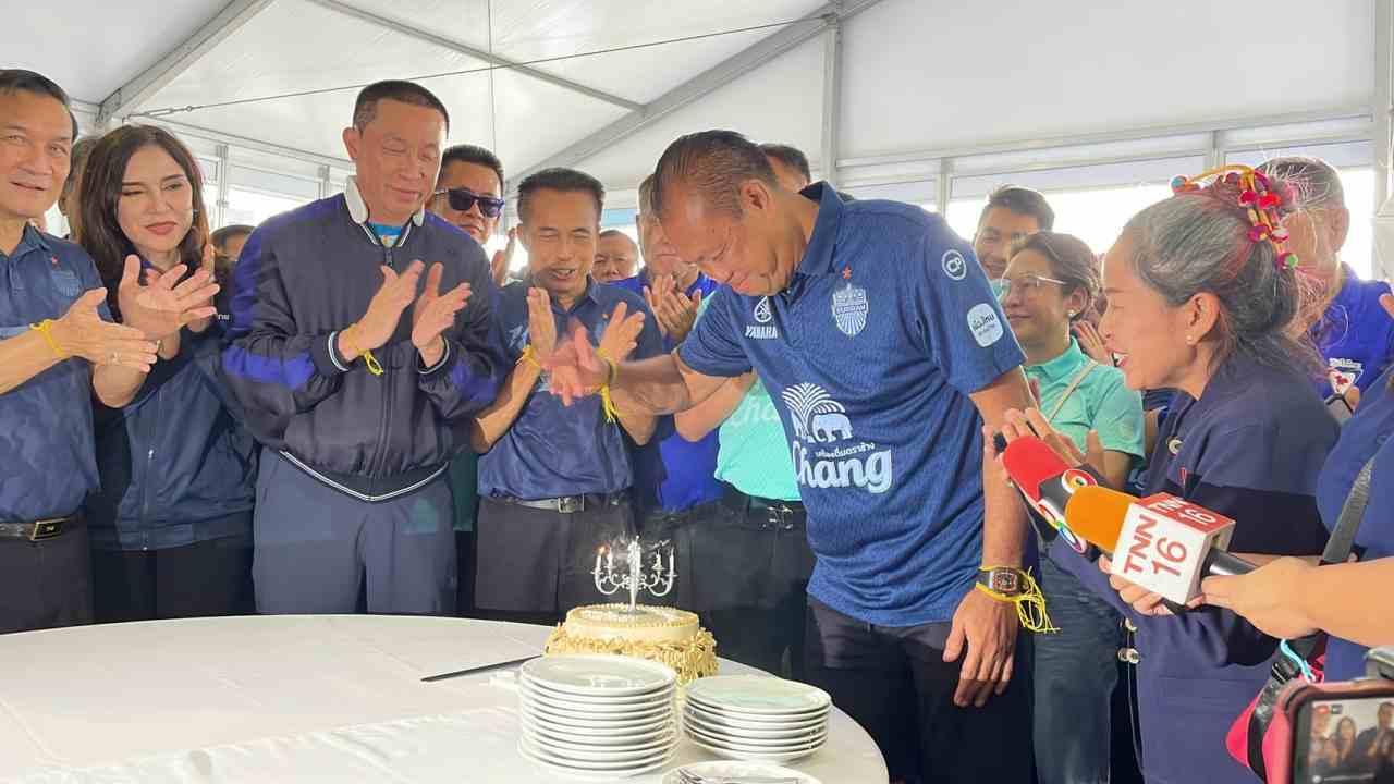 “อนุทิน” นำลูกพรรคภูมิใจไทย มอบเค้ก อวยพร “เนวิน” ครบ 64 ปี ยกเป็นครูใหญ่ ขอให้อายุยืน 100 ปี ด้าน “เนวิน” ประกาศ หวังมีลูกศิษย์เป็นนายกฯ สักคน หากไม่ได้ ขอลาออกครูใหญ่
