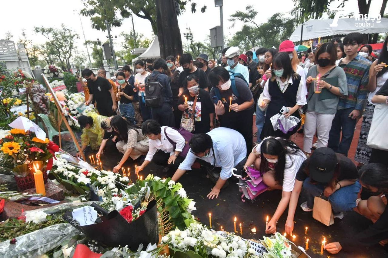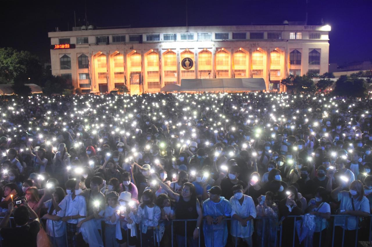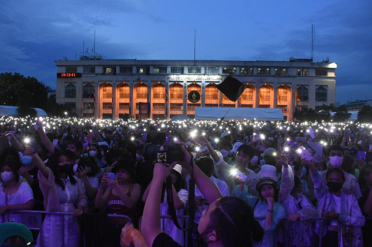 วัยรุ่นหนุ่มสาวชูสามนิ้ว ร่วมงานคอนเสิร์ตรำลึก 6 ตุลา ล้นทะลักลานคนเมือง โห่ไล่กลุ่มยกเลิก 112 ที่โผล่ป่วนงาน ด้านสภานักศึกษา มธ.จุดเทียนรำลึกให้ผู้วายชนม์