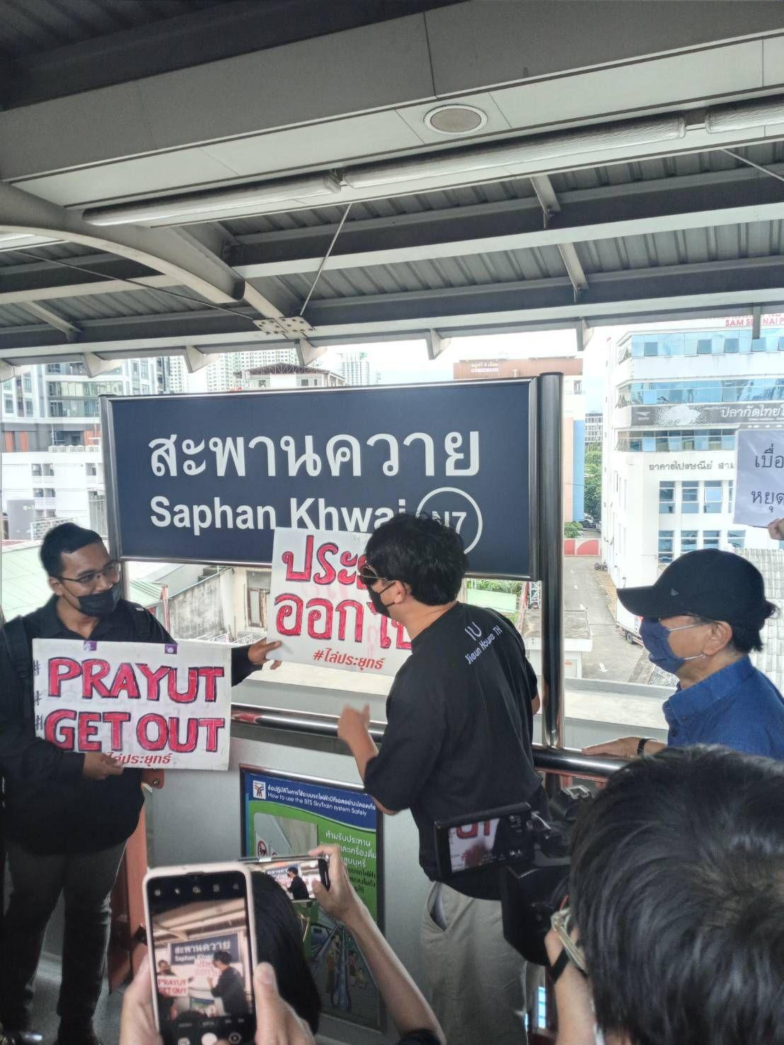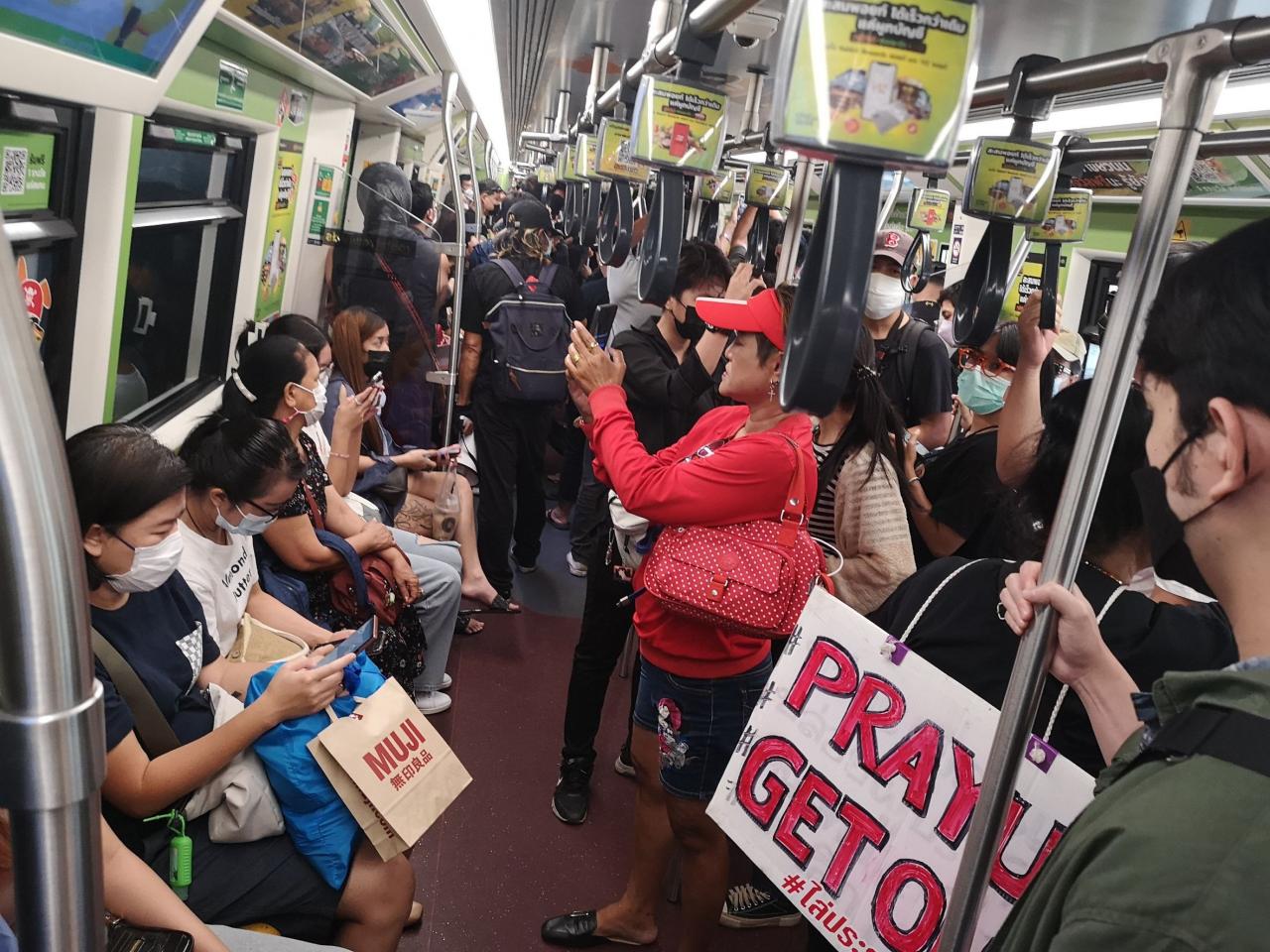 บก.ลายจุด พามวลชนขาประจำชุมนุมแฟลชม็อบไล่ “พล.อ.ประยุทธ์” บนรถไฟฟ้าบีทีเอสจากสยาม-หมอชิต ฝันนัดสวมเสื้อดำเข้าคูหาเลือกตั้งไล่เผด็จการ เผยมวลชนอิสระนัด 13 ต.ค.ที่ลานคนเมือง