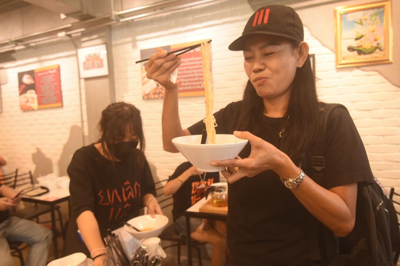 บก.ลายจุด จัดแฟลชม็อบ แต่งดำทานก๋วยเตี๋ยวไล่ประยุทธ์ ปลุกเร้าประชาชนร่วมแสดงพลังทุกวันโดยไม่ต้องจัดม็อบ “อมรัตน์-ป้าเป้า” ตบเท้าร่วมกิจกรรมด้วย