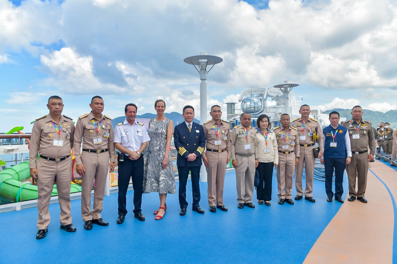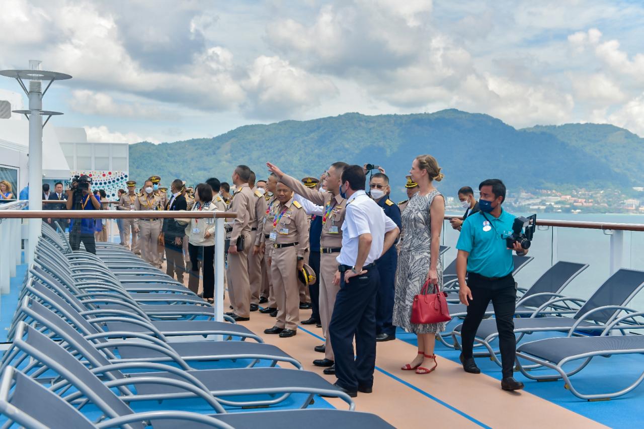 ทั้งนี้ คณะรอง ผอ.ศรชล. ได้รับการต้อนรับอย่างอบอุ่น โดยเยี่ยมชมสะพานเดินเรือ ชั้น 12 ตลอดจนสิ่งอำนวยความสะดวกของเรือ เช่น IFly และ Flowrider ที่ตั้งอยู่ที่ชั้น 15 จากนั้นคณะทั้งหมดร่วมประทานอาหารกลางวันที่ CHOPS Grille ที่ชั้น 5 และถ่ายภาพที่ระลึกร่วมกัน โดยมีการหารือถึงแนวทางส่งเสริมการดึงดูดนักท่องเที่ยวชาวต่างชาติเพิ่มมากขึ้น หลังจากต้องหยุดให้บริการไปตั้งแต่ช่วงเดือนกุมภาพันธ์ 2563 เพราะสถานการณ์โควิด ซึ่งปัจจุบันสถานการณ์เริ่มคลี่คลายในทางที่ดีขึ้น อีกทั้งมีประกาศของกระทรวงสาธารณสุขให้ โรคโควิด-19 ไม่ใช่โรคติดต่อร้ายแรงตั้งแต่วันที่ 1 ตุลาคม 2565 นับเป็นสัญญาณเปิดประเทศที่ดีในการอ้าแขนรับนักท่องเที่ยวต่างชาติสู่อ้อมกอดของทะเลไทยอีกครั้งทั้งฝั่งทะเลอันดามัน และทะเลอ่าวไทย ไม่ว่าจะเป็น เกาะไม้ท่อน เกาะราชา เกาะเฮ จังหวัดภูเก็ต หมู่เกาะสิมิลัน หมู่เกาะสุรินทร์ จังหวัดพังงา เกาะหลีเป๊ะ จังหวัดสตูล หรือหมู่เกาะอ่างทอง จังหวัดสุราษฎร์ธานี หมู่เกาะช้าง จังหวัดตราด และหาดขนอม หมู่เกาะทะเลใต้ จังหวัดนครศรีธรรมราช ล้วนเป็นแหล่งท่องเที่ยวสวยงามทั้งสองฝั่งทะเลของประเทศไทยที่มีชื่อเสียงโด่งดังไกลไปทั่วโลก
