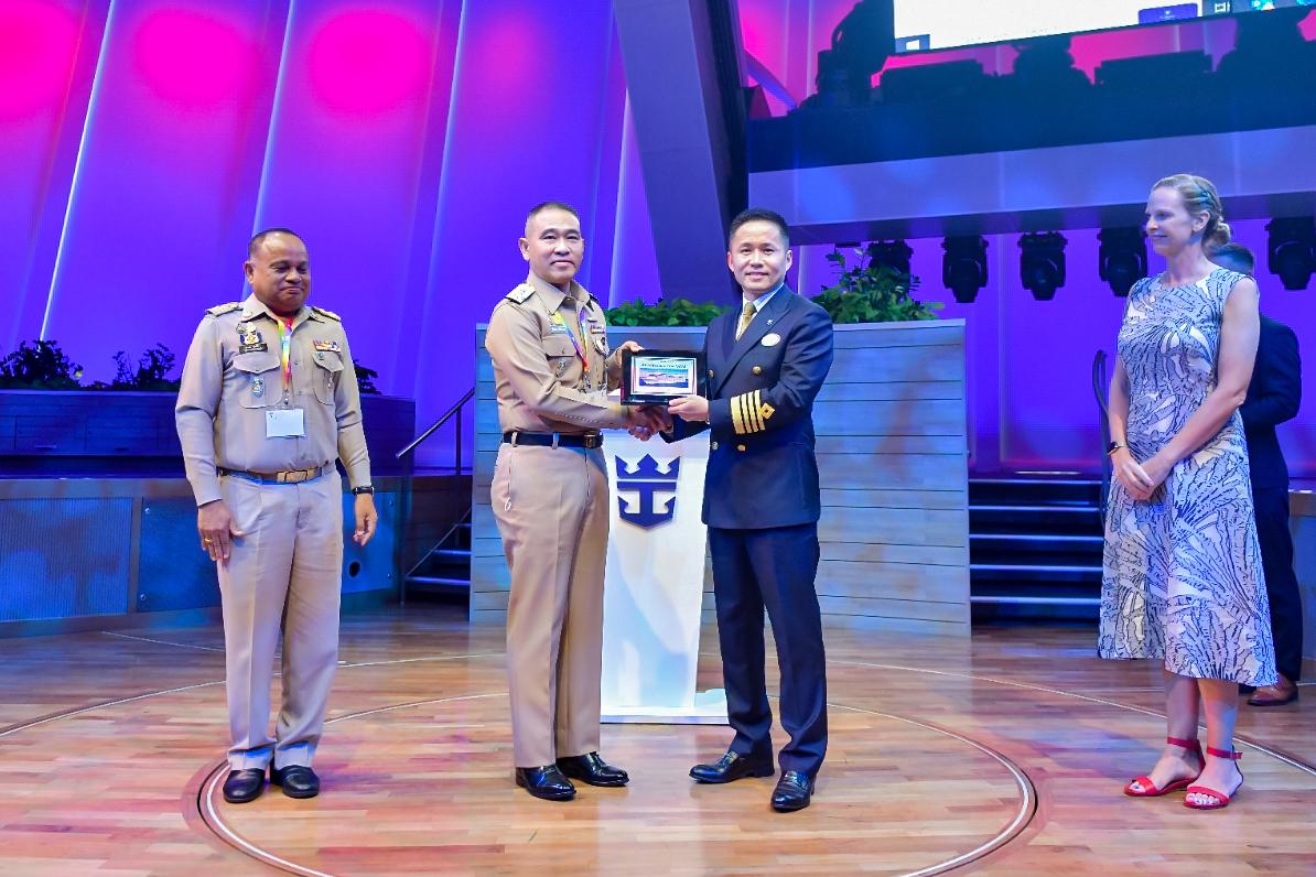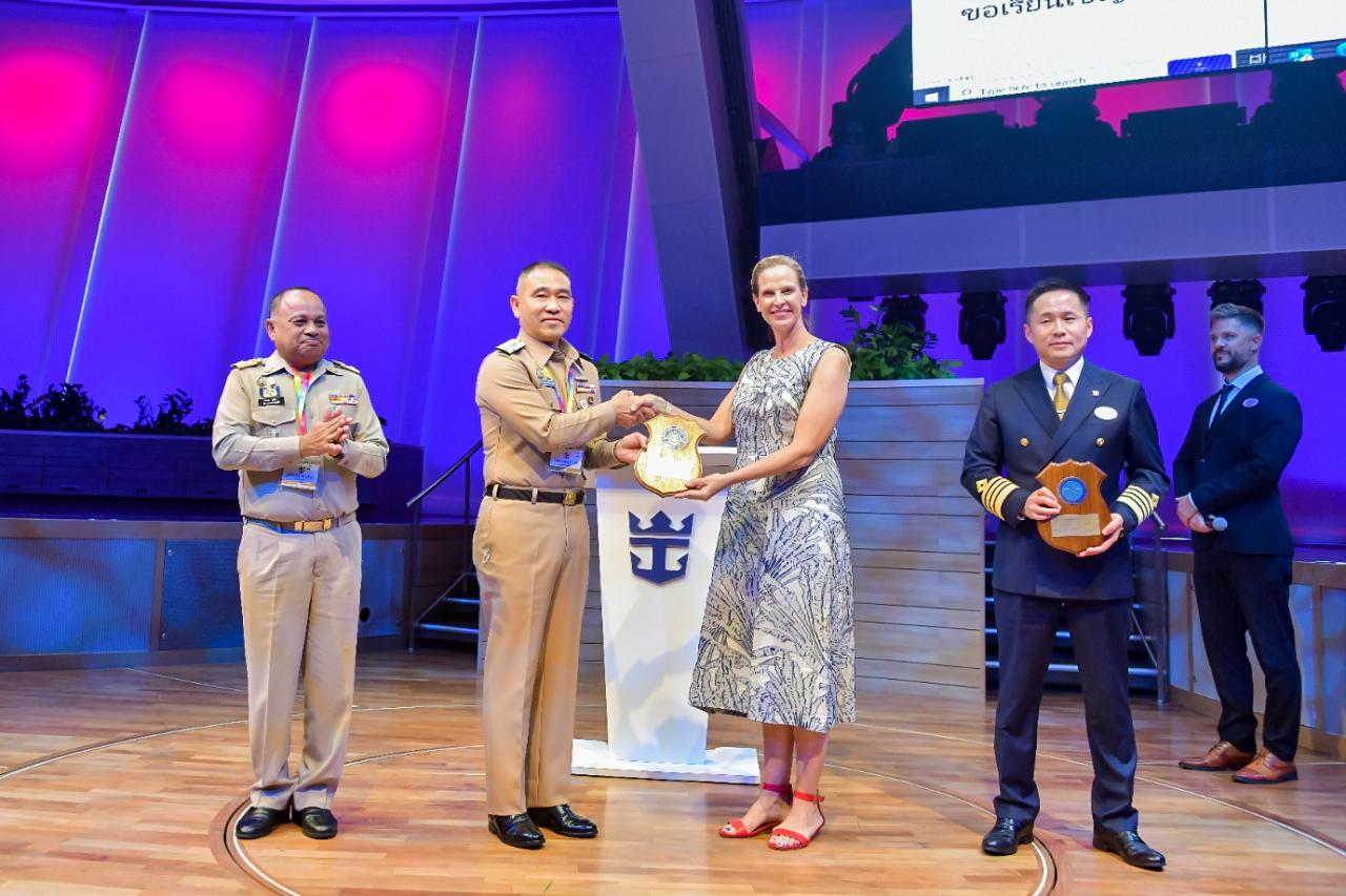 "ในฐานะเจ้าของบ้าน ผมขอถือโอกาสนี้ในการต้อนรับการกลับมาให้บริการในประเทศไทยของสายเรือ Royal Caribbean International อีกครั้ง และมีความยินดีที่จะสนับสนุนและอำนวยความสะดวกให้กับเรือสำราญและนักท่องเที่ยวทุกๆ คน ขอบคุณครับ" รอง ผอ.ศรชล. กล่าว