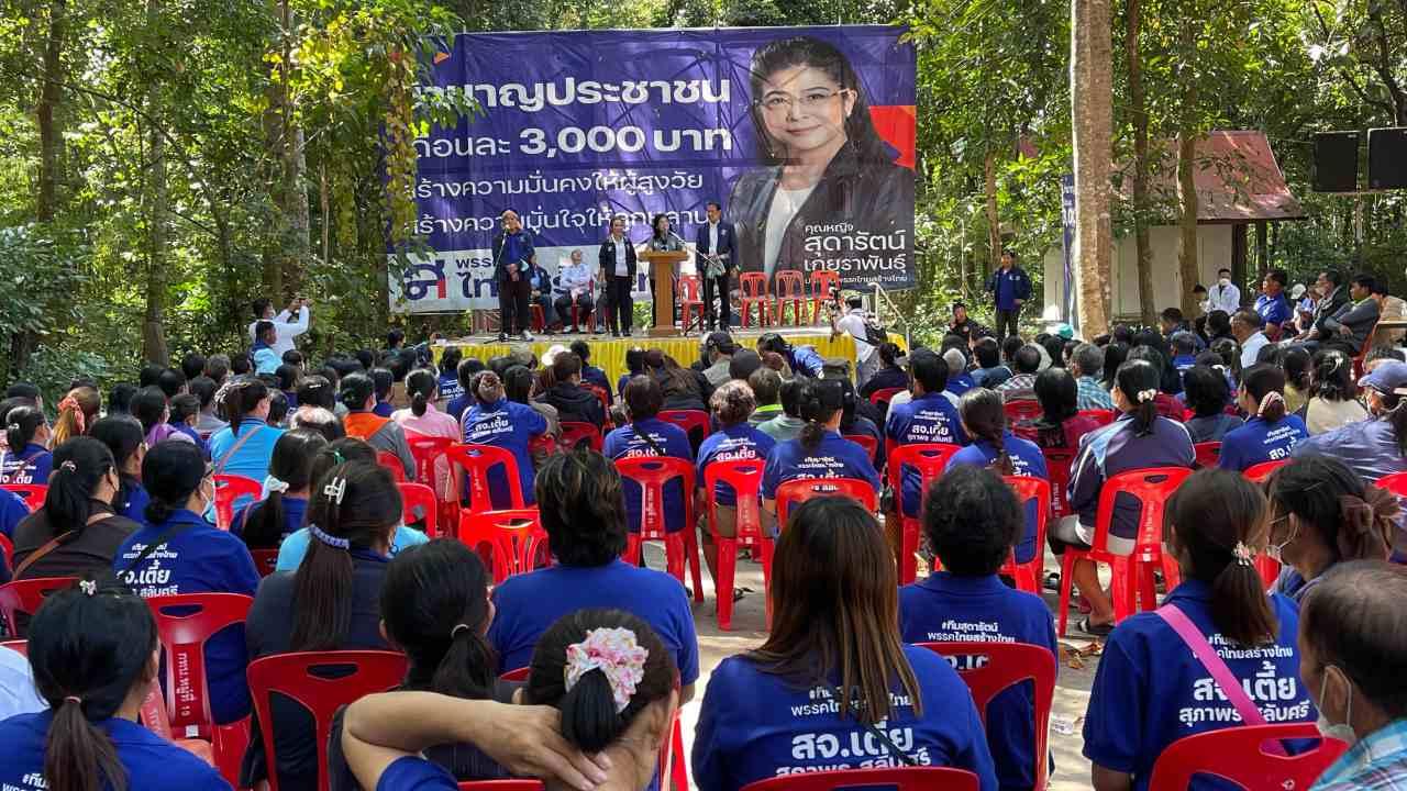 คุณหญิงสุดารัตน์ เกยุราพันธุ์ หัวหน้าพรรคไทยสร้างไทย นำคณะ บุก อ้อน คนยโสธร ขอเป็นนายกฯ หญิงคนอีสาน แก้ปัญหาความยากจน ชูนโยบาย บำนาญประชาชนเดือนละ 3,000 บาท เพิ่มมูลค่าผลผลิตทางการเกษตร