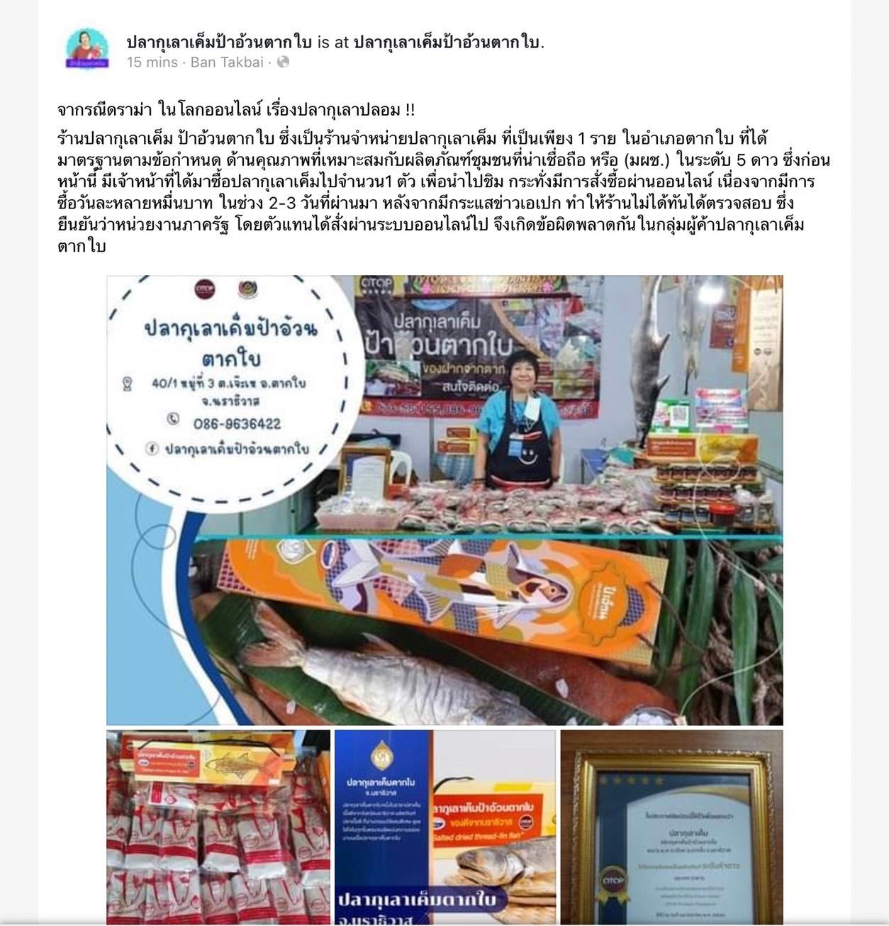 สำหรับการจัดซื้อว่ามาจากไหนนั้น ผู้จัดงานได้ซื้อจากร้าน “ปลากุเลาเค็มตากใบป้าอ้วน” ซึ่งเป็นสินค้า OTOP 5 ดาว ซึ่งผู้ประกอบการกลุ่มอื่นไม่ได้ทราบในข้อมูลตรงนี้ จึงเกิดความเข้าใจผิด