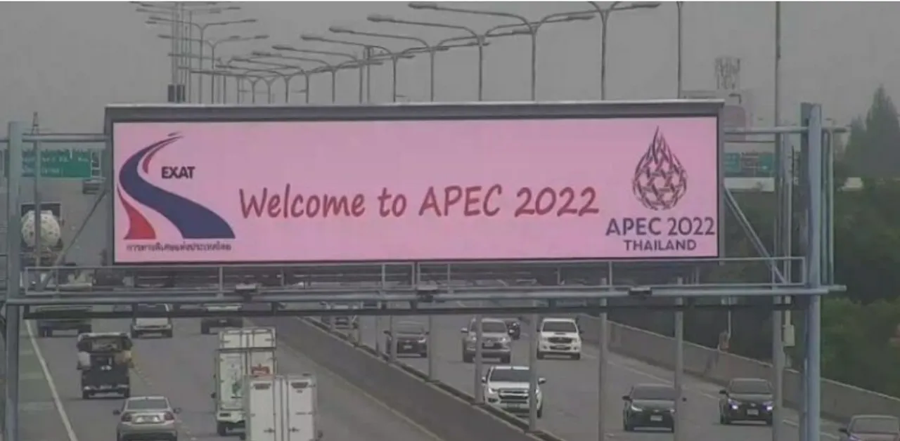 วันที่ 15 พ.ย. 2565 น.ส.ไตรศุลี ไตรสรณกุล รองโฆษกประจำสำนักนายกรัฐมนตรี กล่าวว่า จากกรณีที่สื่อสังคมออนไลน์ได้เผยแพร่ภาพป้ายปรับเปลี่ยนข้อความ (VMS) บนทางพิเศษฉลองรัช ที่ขึ้นข้อความต้อนรับการประชุมผู้นำเอเปก แล้วมีข้อความบางคำมีตัวอักษรตกหล่นนั้น การทางพิเศษแห่งประเทศไทย (กทพ.) ซึ่งเป็นหน่วยงานดูแลพื้นที่ได้แจ้งว่า จุดที่มีตัวอักษรตกหล่นนั้นเป็นป้าย VMS แบบ Full LED ที่ติดตั้งบนทางพิเศษฉลองรัชบางป้าย และ กพท. ได้ดำเนินการแก้ไขทันทีที่ตรวจสอบพบว่าข้อความตกหล่น ตั้งแต่วันเสาร์ที่ 12 พ.ย. 65 ส่วนข้อความบนป้าย VMS บนทางพิเศษอีก 7 สายทางไม่มีข้อผิดพลาดแต่อย่างใด