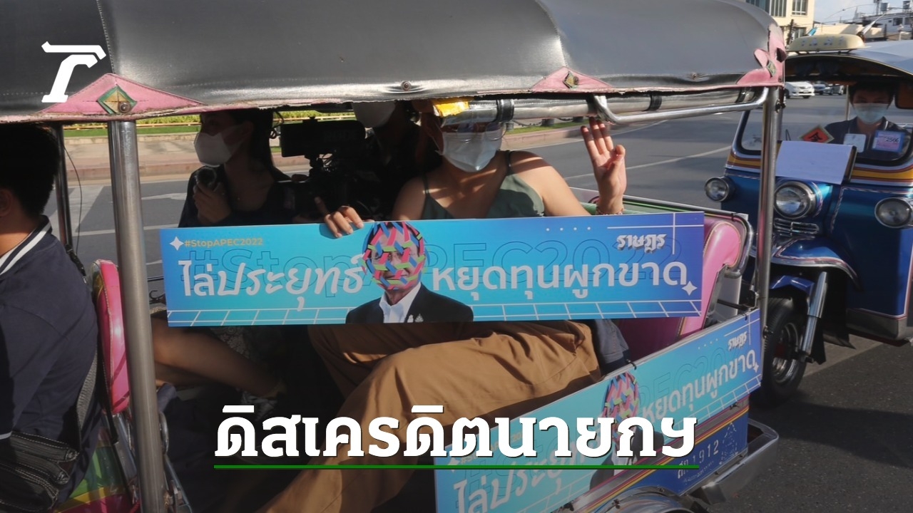 "เครือข่ายราษฎร" หยุด APEC 2022 ปล่อยขบวนแห่รถตุ๊กตุ๊ก คัดค้านการประชุม APEC 2022 ชู สโลแกน "ไล่ประยุทธ์ หยุดทุนผูกขาด" ด้านเครือข่ายรามฯ ถามหาความชอบธรรมของ พล.อ.ประยุทธ์ ในการเป็นประธานประชุม