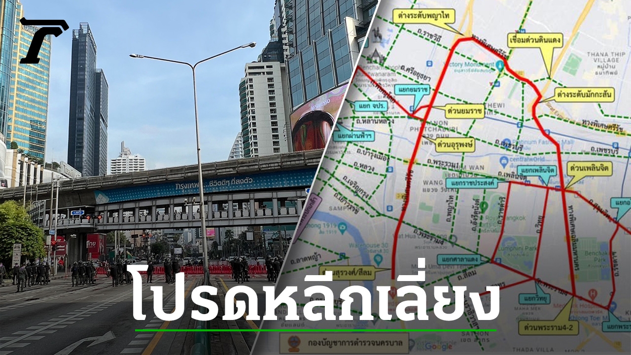 โดยเส้นทางที่ขอให้ประชาชนหลีกเลี่ยงมี 2 เส้นทาง คือ ทางพื้นราบ ได้แก่ ถนนเพลินจิต (แยกราชประสงค์-แยกเพลินจิต) / ถนนสุขุมวิท (แยกเพลินจิต-ซอยสุขุมวิท 22) / ถนนราชดำริ (แยกราชประสงค์-แยกศาลาแดง) / ถนนวิทยุ (แยกเพลินจิต-แยกวิทยุ)