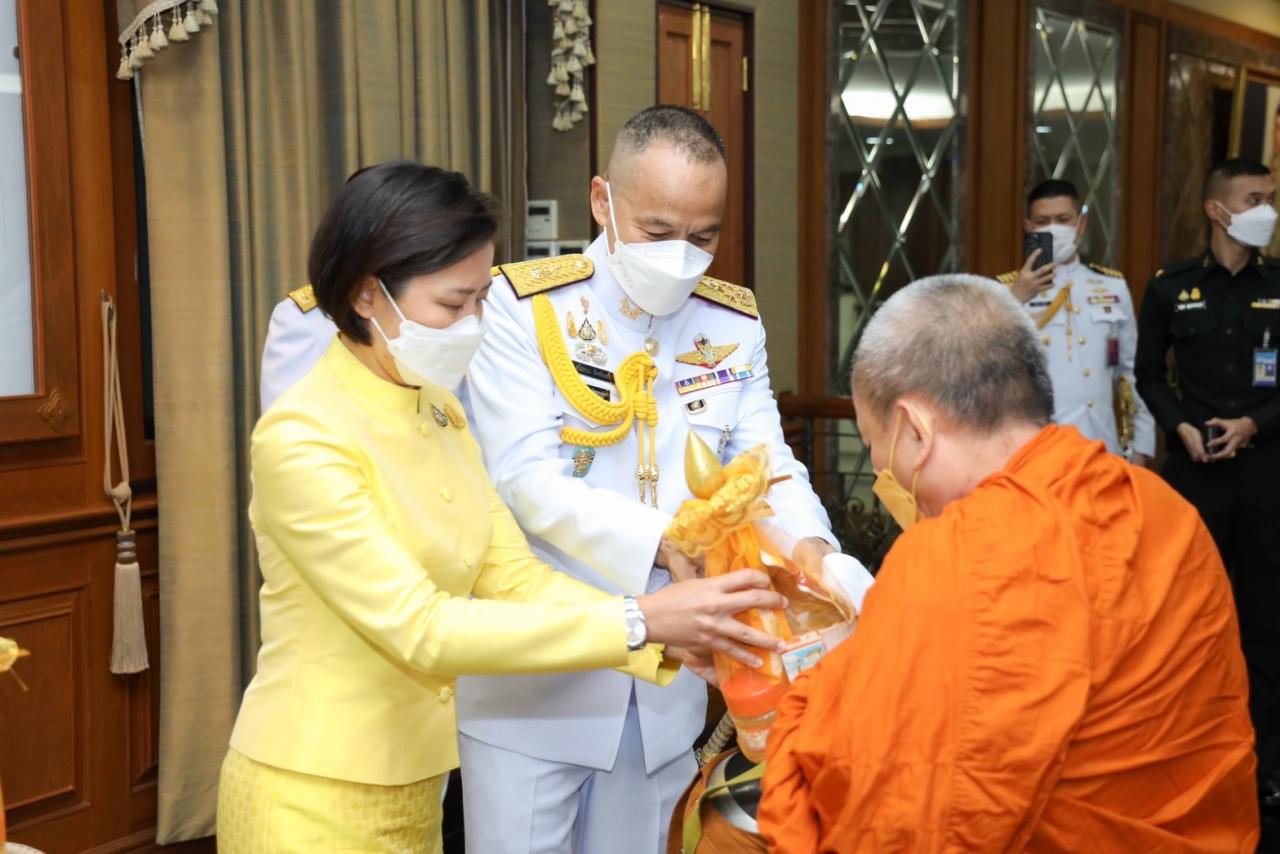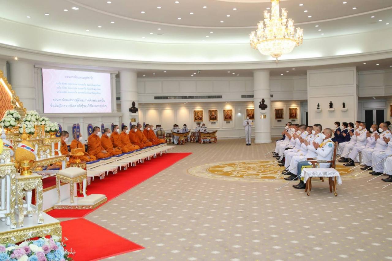 ต่อมาในเวลา 09.00 น. รองผบ.ทร. ได้เป็นประธานในพิธีเจริญพระพุทธมนต์ และพิธีบำเพ็ญกุศลทักษิณานุปทาน ถวายเป็นพระราชกุศล ณ ท้องพระโรง พระราชวังเดิม โดยมี อุปนายกสมาคมภริยาทหารเรือ พร้อมคณะนายทหารชั้นผู้ใหญ่ของกองทัพเรือ พร้อมภริยา ตลอดจนหัวหน้าหน่วยขึ้นตรงกองทัพเรือ หัวหน้าหน่วยขึ้นตรงกองเรือยุทธการ และหัวหน้าหน่วยขึ้นตรงกรมอู่ทหารเรือ ในพื้นที่กรุงเทพฯ และปริมณฑล ร่วมในพิธี โดยนิมนต์พระสงฆ์จากวัดอรุณราชวราราม โดยมี พระพรหมวัชรเมธี เจ้าอาวาสวัดอรุณราชวราราม เป็นประธานฝ่ายสงฆ์