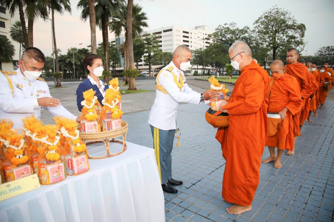 โดยในเวลา 07.10 น. รองผู้บัญชาการทหารเรือ ได้นำผู้เข้าร่วมพิธีวางพานพุ่มดอกไม้และกล่าวน้อมรำลึกในพระมหากรุณาธิคุณ พระบาทสมเด็จพระบรมชนกาธิเบศรมหาภูมิพลอดุลยเดชมหาราช บรมนาถบพิตร พิธีทำบุญตักบาตรพระภิกษุสามเณร จำนวน 89 รูป จากวัดอรุณราชวรารามราชวรมหาวิหาร วัดชิโนรสารามวรวิหาร วัดโมลีโลกยารามราชวรวิหาร วัดนาคกลางวรวิหาร ณ บริเวณลานหน้ากองบัญชาการกองทัพเรือ พระราชวังเดิม