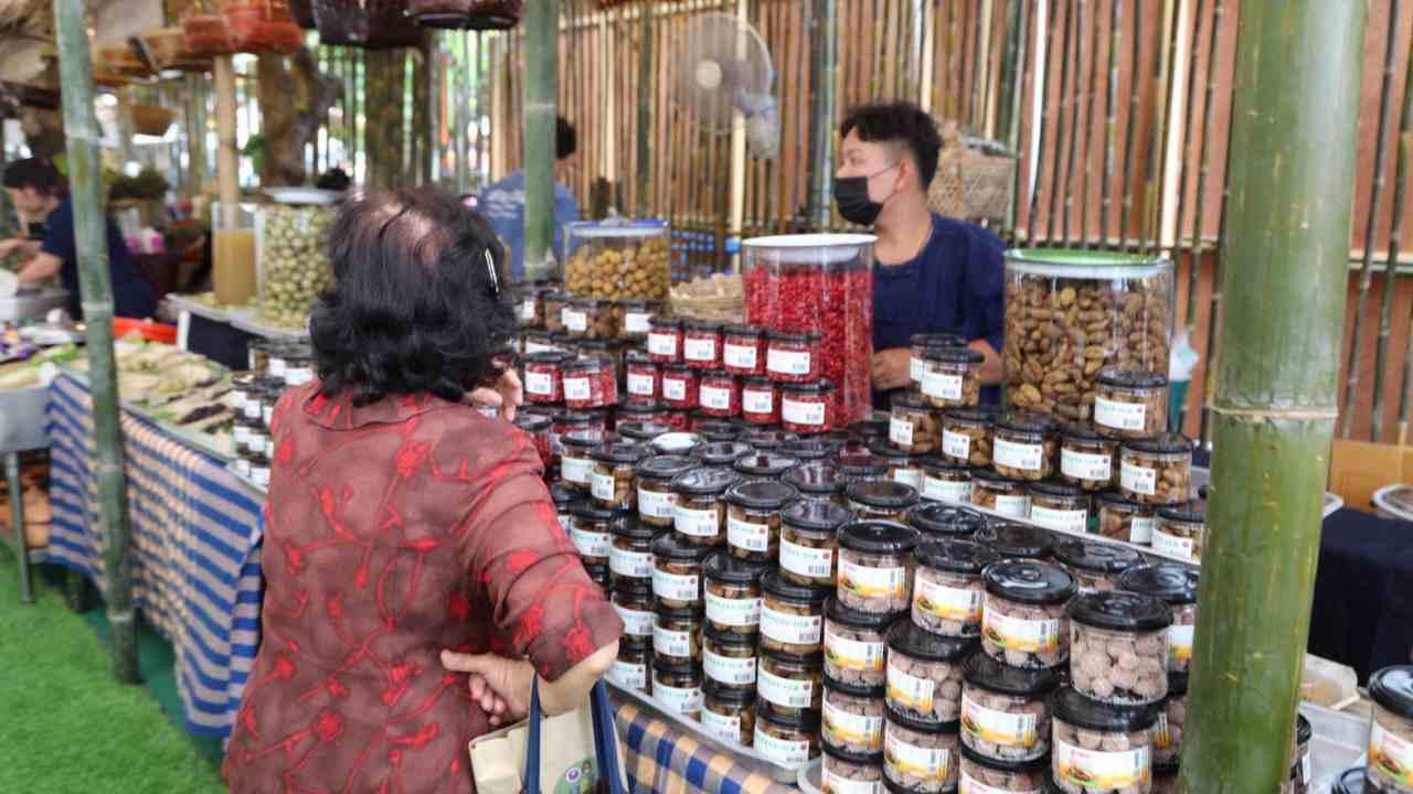 ภายในร้านกาชาดกรมการพัฒนาชุมชน แบ่งกิจกรรมออกเป็น 2 โซน คือ กิจกรรมจำหน่ายผลิตภัณฑ์ OTOP จัดจำหน่ายผลิตภัณฑ์ OTOP จากตลาดหัวปลี จังหวัดสระบุรี โดยการจำหน่ายสินค้าอัตลักษณ์ของภูมิปัญญาท้องถิ่น ด้วยการจัดแสดงสมุนไพรเพื่อสุขภาพ “กินอาหารเป็นยา กินเป็นก็เป็นยา” มีน้ำสมุนไพร น้ำมะขามป้อมแดง น้ำพริกเผาเห็ด ลาบหัวปลี ข้าวเกรียบเห็ดหอม ชาชักสตูล น้ำปลาหวานต้นหอม เป็นต้น และโซนนิทรรศการผลผลิตจากแปลงโคก หนอง นา มาแปรรูปเป็นผลิตภัณฑ์เพื่อสุขภาพ กล้าพันธุ์ไม้ สมุนไพรหายาก สามารถเลือกซื้อของกินสดใหม่จากชุมชน ผักปลอดสารพิษ ผลไม้จากสวน และอาหารสุขภาพแปรรูปจากผลผลิตทางการเกษตร พร้อมบริการแช่เท้าด้วยน้ำสมุนไพรเพื่อสุขภาพ