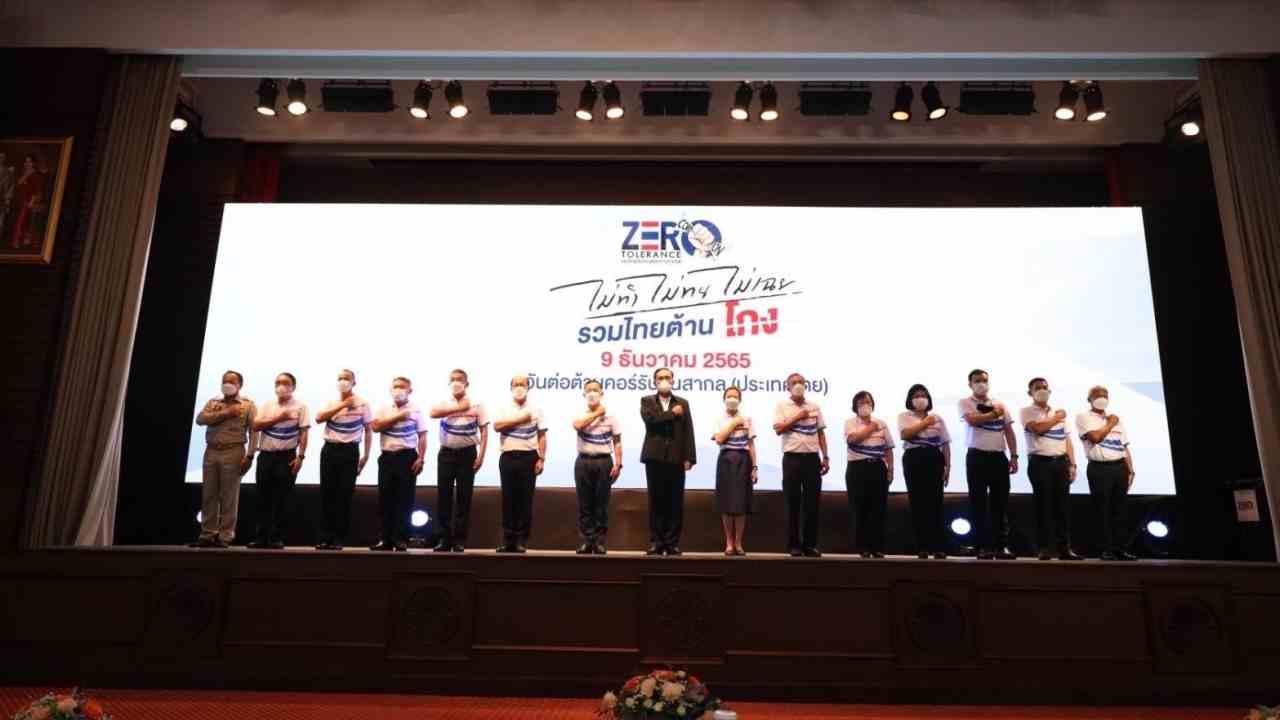 เมื่อเวลา 10.00 น.วันที่ 9 ธ.ค. ที่ห้องประชุมนนทบุรี สำนักงานคณะกรรมการป้องกันและปราบปรามการทุจริตแห่งชาติ (ป.ป.ช.) พล.อ.ประยุทธ์ จันทร์โอชา นายกรัฐมนตรี และรมว.กลาโหม เป็นประธานประกาศเจตนารมณ์ต่อต้านการทุจริต ในงานต่อต้านคอร์รัปชันสากลประเทศไทย ประจำปี 2565 ภายใต้แนวคิด"ไม่ทำ ไม่ทน ไม่เฉย รวมไทยต้านโกง" โดยมี พล.อ.อนุพงษ์ เผ่าจินดา รมว.มหาดไทย พล.อ.ชัยชาญ ช้างมงคล รมช.กลาโหม ตัวแทนคณะกรรมการ ป.ป.ช.และผู้บริหารสำนักงาน ป.ป.ช.คณะกรรมการและผู้บริหารสำนักงานคณะกรรมการป้องกันและปราบปรามการทุจริตในภาครัฐ (ป.ป.ท.) ผู้บริหารองค์กรต่อต้านคอร์รัปชัน (ประเทศไทย) ผู้บริหารหน่วยงานภาครัฐ และภาคเอกชน ร่วมงาน ขณะที่ พล.ต.อ.วัชรพล ประสารราชกิจ ประธาน ป.ป.ช. กล่าวต้อนรับ และกล่าววัตถุประสงค์การจัดงาน