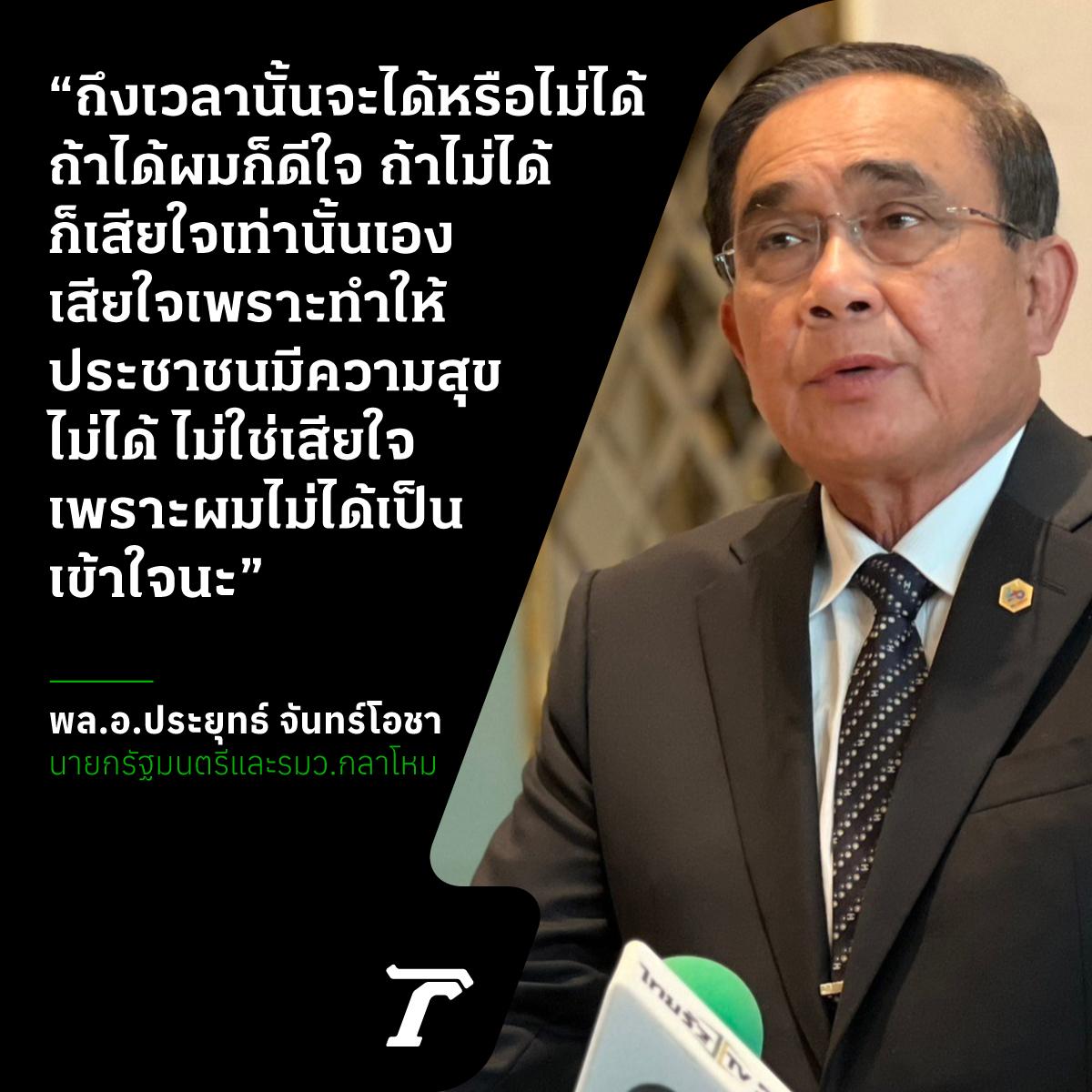 นายกฯ พ้อ ได้เป็นนายกฯ หรือไม่ อยู่ที่ประชาชนเลือก รับ เสียใจหากไม่ได้ "คัมแบ็ก" ทำให้ ปชช.มีความสุขต่อไม่ได้ ยัน ไม่เคยทะเลาะกับใคร หลัง ส.ส.แห่ย้ายพรรค อัด คนทำสภาล่มไม่ต้องโทษนายกฯ บอก รอเวลาเหมาะสม ถึงเวลาพูดเองอยู่พรรคไหน