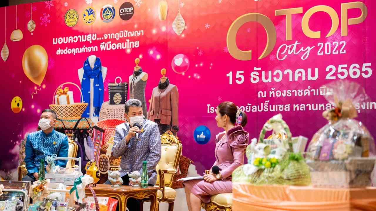 วันที่ 15 ธ.ค. 2565 เวลา 11.00 น. ที่โรงแรมรอยัลปริ้นเซส หลานหลวง กรุงเทพมหานคร นายสุทธิพงษ์ จุลเจริญ ปลัดกระทรวงมหาดไทย เป็นประธานในพิธีแถลงข่าวการจัดงานโครงการ OTOP CITY 2022 พร้อมด้วยนายอรรษิษฐ์ สัมพันธรัตน์ อธิบดีกรมการพัฒนาชุมชน และผู้บริหาร เข้าร่วม โดยนายสุทธิพงษ์ กล่าวว่า รัฐบาลมีนโยบายในการลดความเหลื่อมล้ำทางสังคม โดยการส่งเสริมให้ประชาชนมีอาชีพมีงานทำและสร้างรายได้ โดยการสนับสนุนโครงการหนึ่งตำบล หนึ่งผลิตภัณฑ์ สนับสนุนให้ชุมชนได้มีโอกาสเข้าถึงองค์ความรู้สมัยใหม่แหล่งเงินทุนรวมทั้งพัฒนาขีดความสามารถในการบริหารจัดการ และการตลาดเพื่อเชื่อมโยงสินค้า จากชุมชนสู่ตลาดทั้งในประเทศ และต่างประเทศ ในฐานะผู้จัดงานคาดหวังเป็นอย่างยิ่งว่าการจัดงานครั้งนี้จะสามารถสร้างงาน สร้างรายได้ให้กับผู้ผลิต ผู้ประกอบการ OTOP ได้ไม่น้อยกว่า 2,000 ครัวเรือน โดยจะสามารถสร้างรายได้ให้เกิดเงินหมุนเวียนในระบบเศรษฐกิจได้ไม่น้อยกว่า 500 ล้านบาท ส่งผลให้คนในชุมชนได้มีกินมีใช้ สร้างเศรษฐกิจฐานรากที่เข้มแข็งของประเทศต่อไป