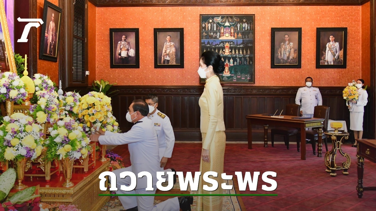 จากนั้น นายกรัฐมนตรีและภริยา ลงนามถวายพระพร ถวายความเคารพพระบรมฉายาลักษณ์พระบาทสมเด็จพระเจ้าอยู่หัว และสมเด็จพระนางเจ้าฯ พระบรมราชินี.