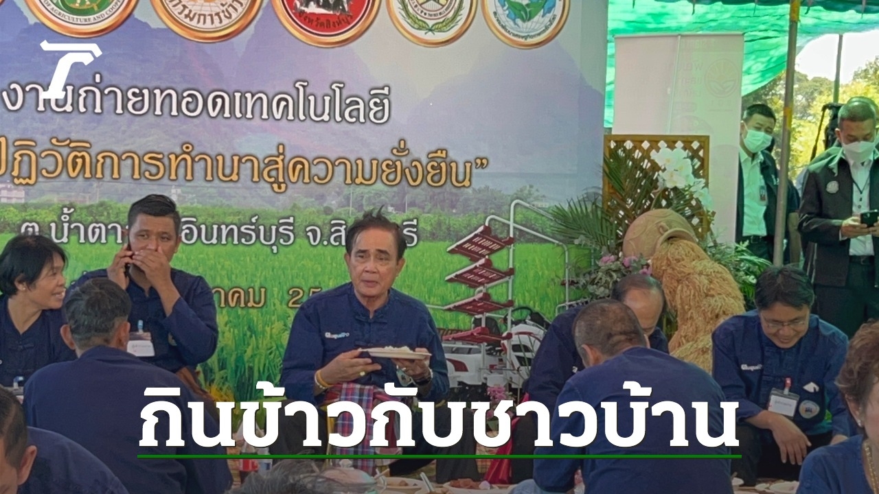 นายกฯ กล่าวต่อว่า มาสิงห์บุรีก็ดีใจ ไม่เคยรักประชาชน น้อยกว่าที่ประชาชนรัก จากนั้น พลเอกประยุทธ์ ได้นั่งล้อมวงกินข้างบนกองฟาง ร่วมกับตัวแทนชุมชน ซึ่งเมนูที่พลเอกประยุทธ์รับประทานวันนี้ มีแกงเผ็ดหน่อไม้ใส่ไก่ ปลาทอด กุนเชียง ไก่ทอด ปลาช่อนทอด ไข่พะโล้ และส้มตำปูปลาร้า ซึ่งเป็นเมนูเดียวกันกับชาวบ้านรับประทาน