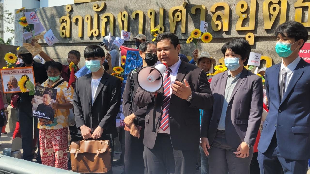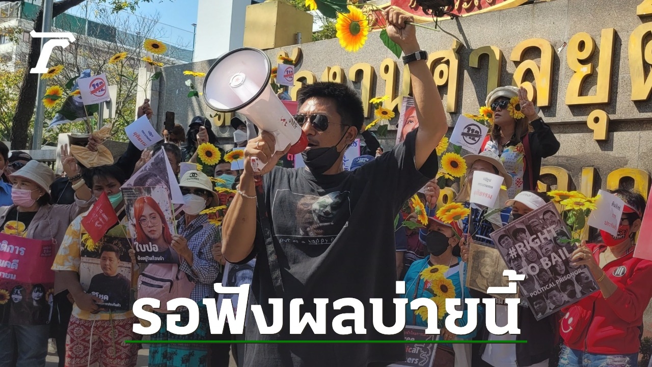 ต่อมา กลุ่มทะลุฟ้ารวมตัวกันที่บริเวณหน้าป้ายสำนักงานศาลยุติธรรม ริมถนนรัชดาภิเษก โดยมีทนายความของศูนย์ทนายความเพื่อสิทธิมนุษยชน นำโดย นายกิตติศักดิ์ กองทอง เดินทางมาชี้แจงว่า วันนี้จะมีการยื่นเอกสารต่อศาลเพื่อขอประกันตัวนักโทษการเมืองจำนวน 12 คนเท่านั้น เนื่องจากอีก 4 คน คือ นายโสภณ สุรฤทธิ์ธำรง หรือ เก็ท, น.ส.ณัฐนิช ดวงมุสิทธิ์ หรือ ใบปอ, น.ส.ทานตะวัน ตัวตุลานนท์ หรือ ตะวัน และ น.ส.อรวรรณ ภู่พงษ์ หรือ แบม ไม่ประสงค์ที่จะยื่นขอประกันตัว สำหรับผลการพิจารณาของศาล จะต้องรอต่อจากนี้ว่าจะให้ประกันตัวตามที่ยื่นขอหรือไม่ จากนั้นทีมทนายความเข้ายื่นหนังสือขอประกันตัวกับศาลโดยมีมวลชนปักหลักรออยู่ด้านหน้า